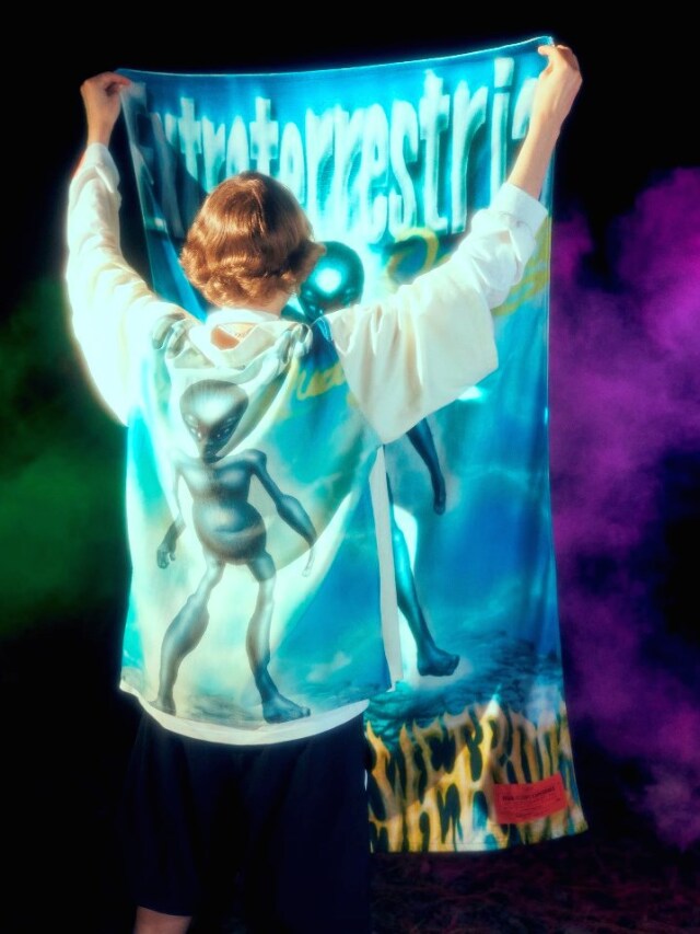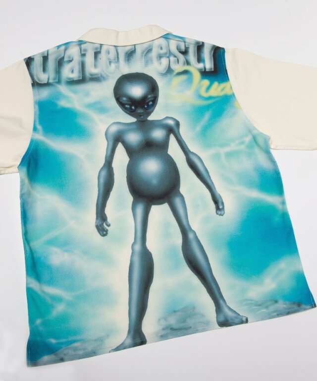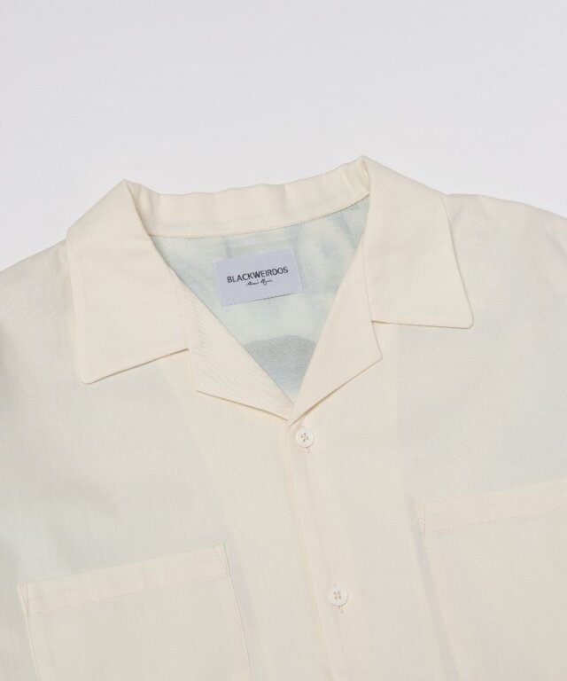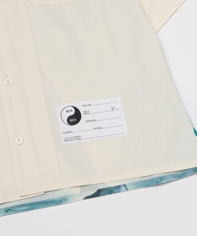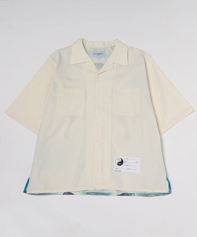 バック身頃部分にオリジナルグラフィックの全面プリントを施し、オープンカラーシャツに仕上げています。