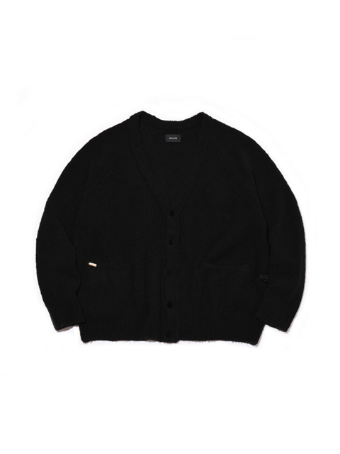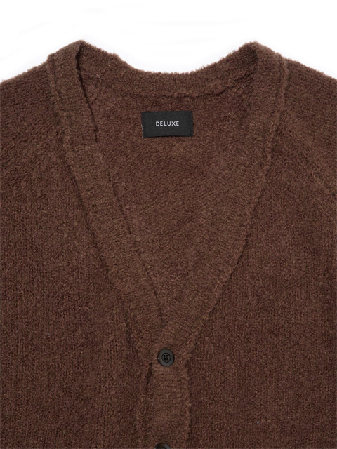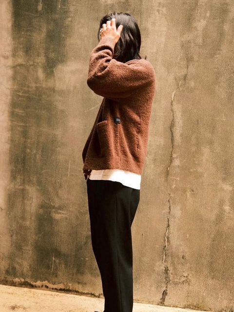 アクリル/ウール/ナイロンの3 種混紡生地を使用して作製されたニットカーディガンです。