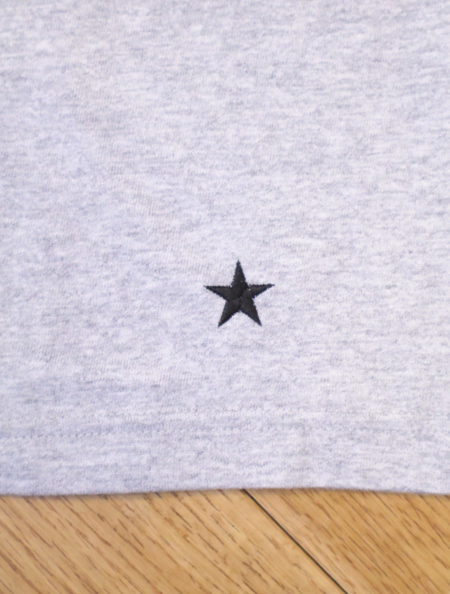 フロントの左裾にはM&Mでお馴染みのノコギリが落とし込まれたタグが付いており、両袖リブには星の刺繍が入っています。