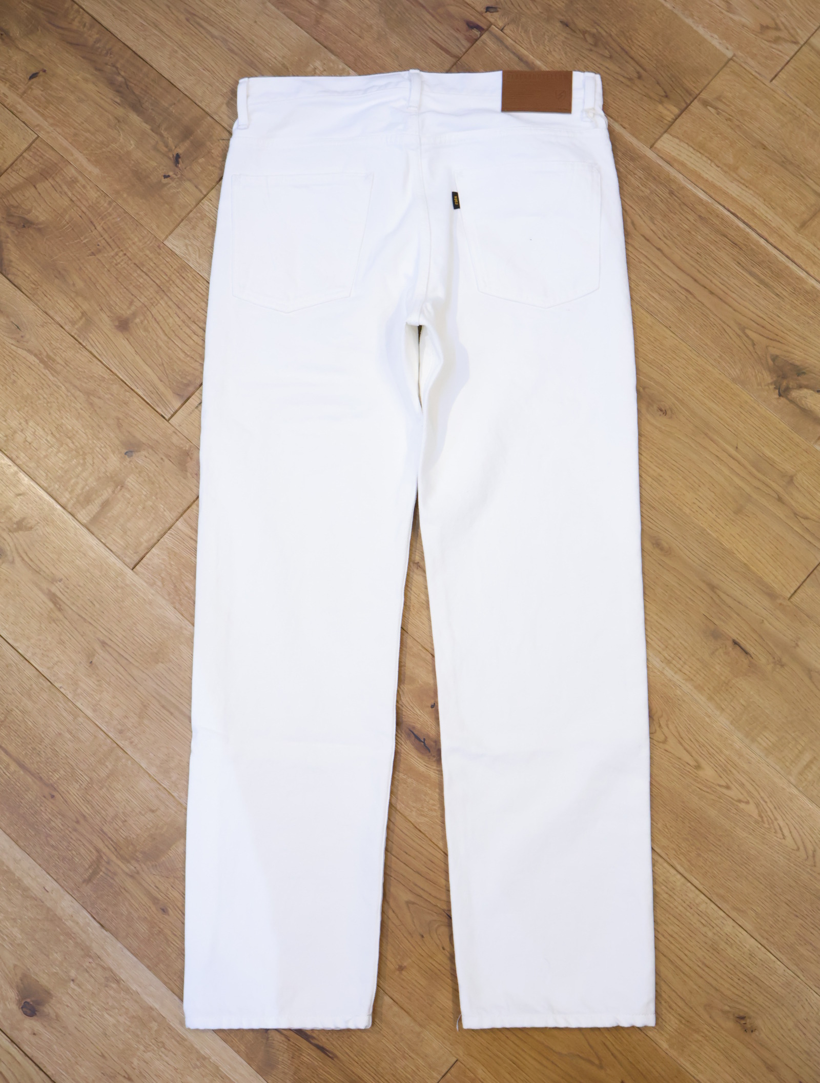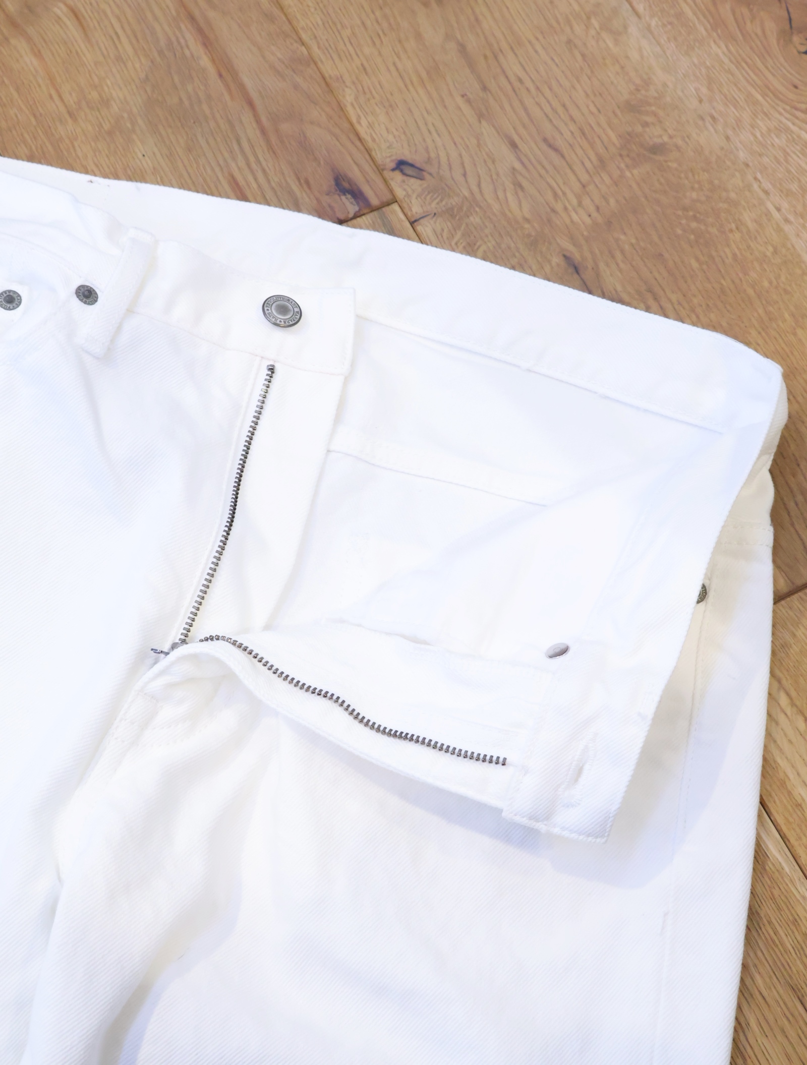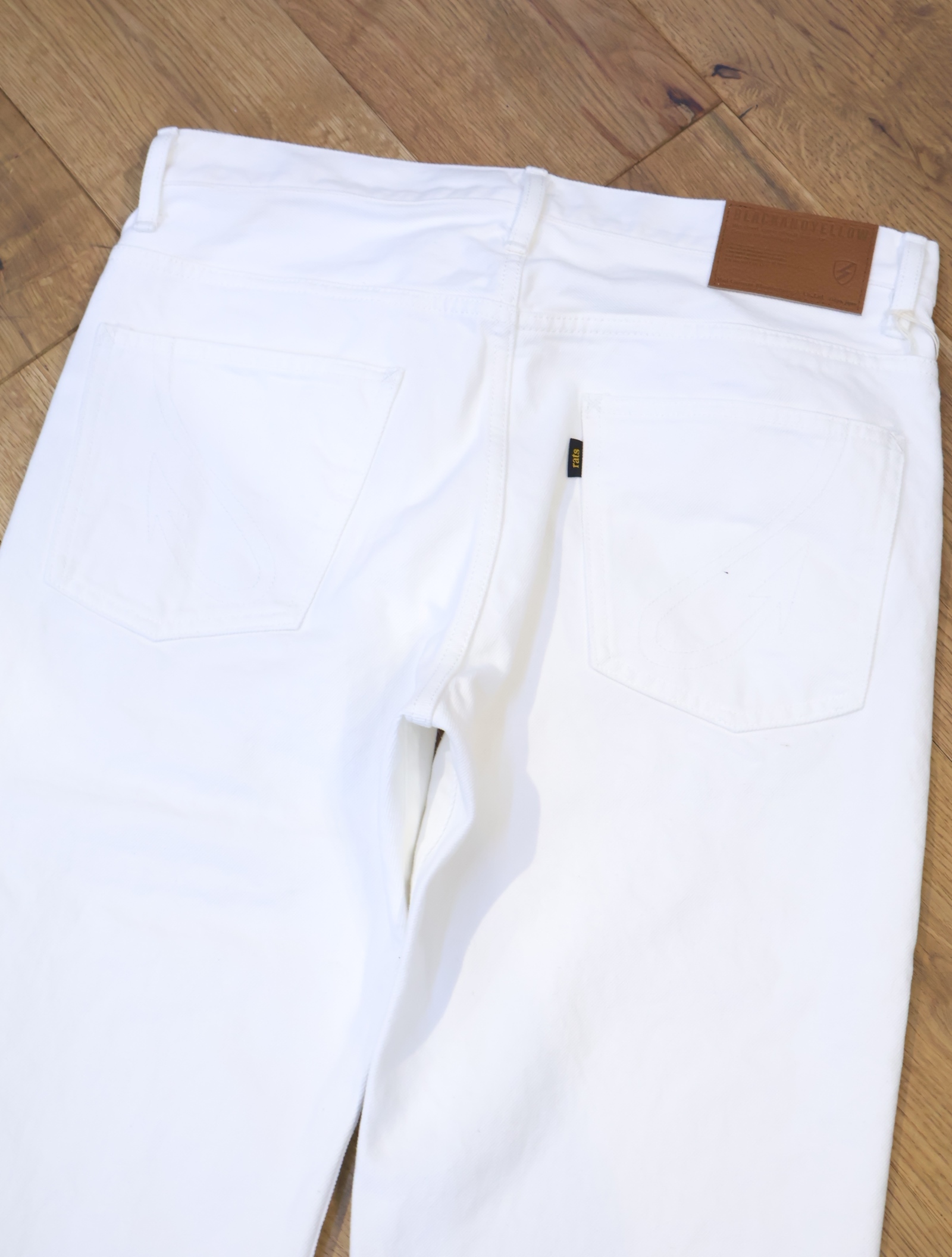 13.5oz.のホワイトデニム生地を採用した、5ポケットのデニムパンツです。