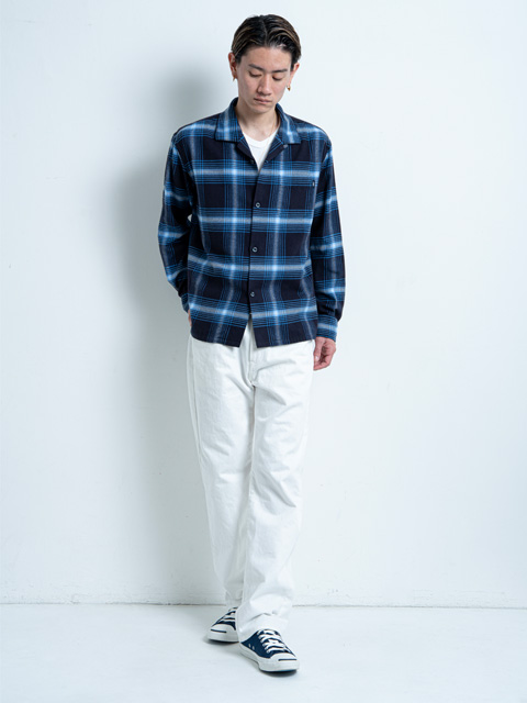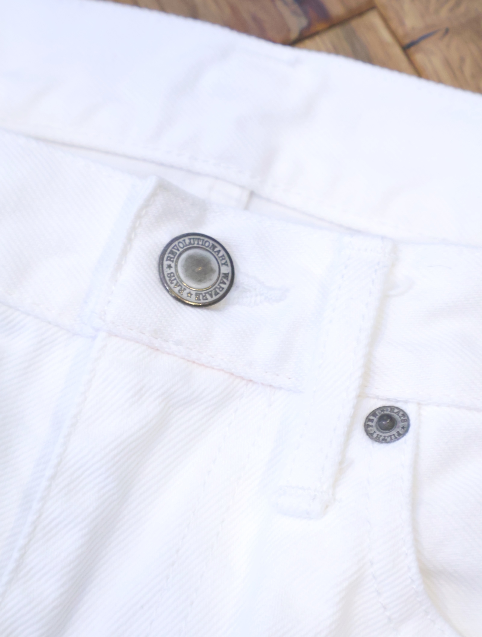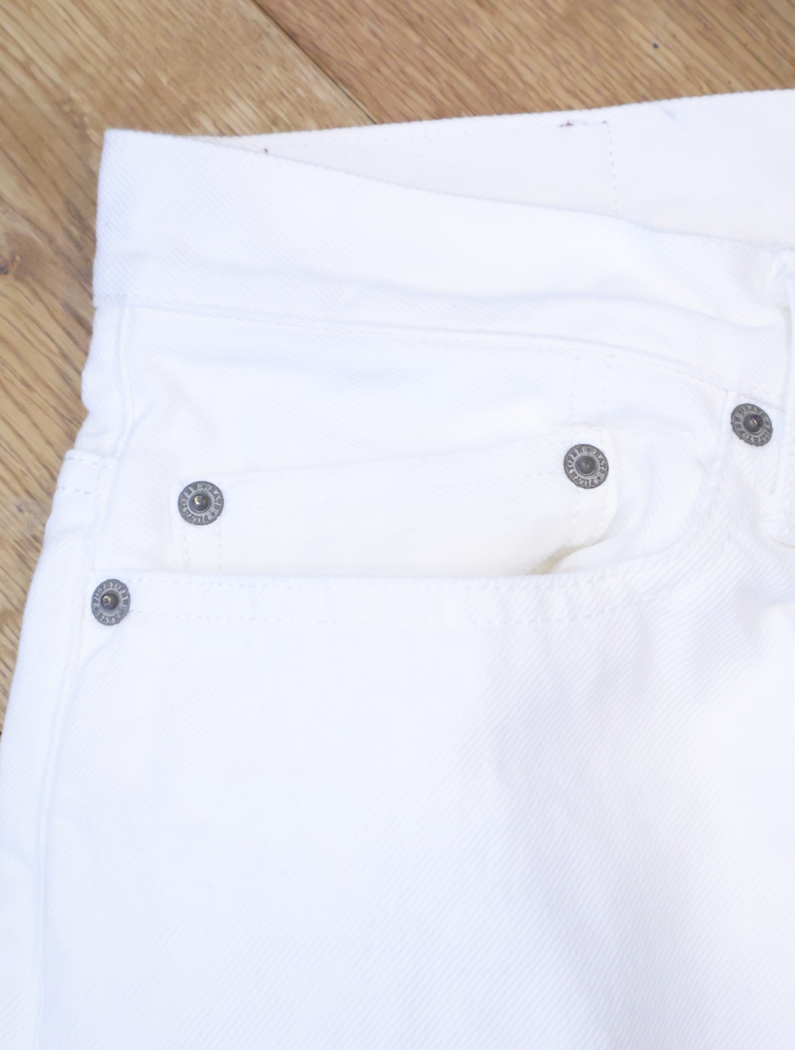 13.5oz.のホワイトデニム生地を採用した、5ポケットのデニムパンツです。