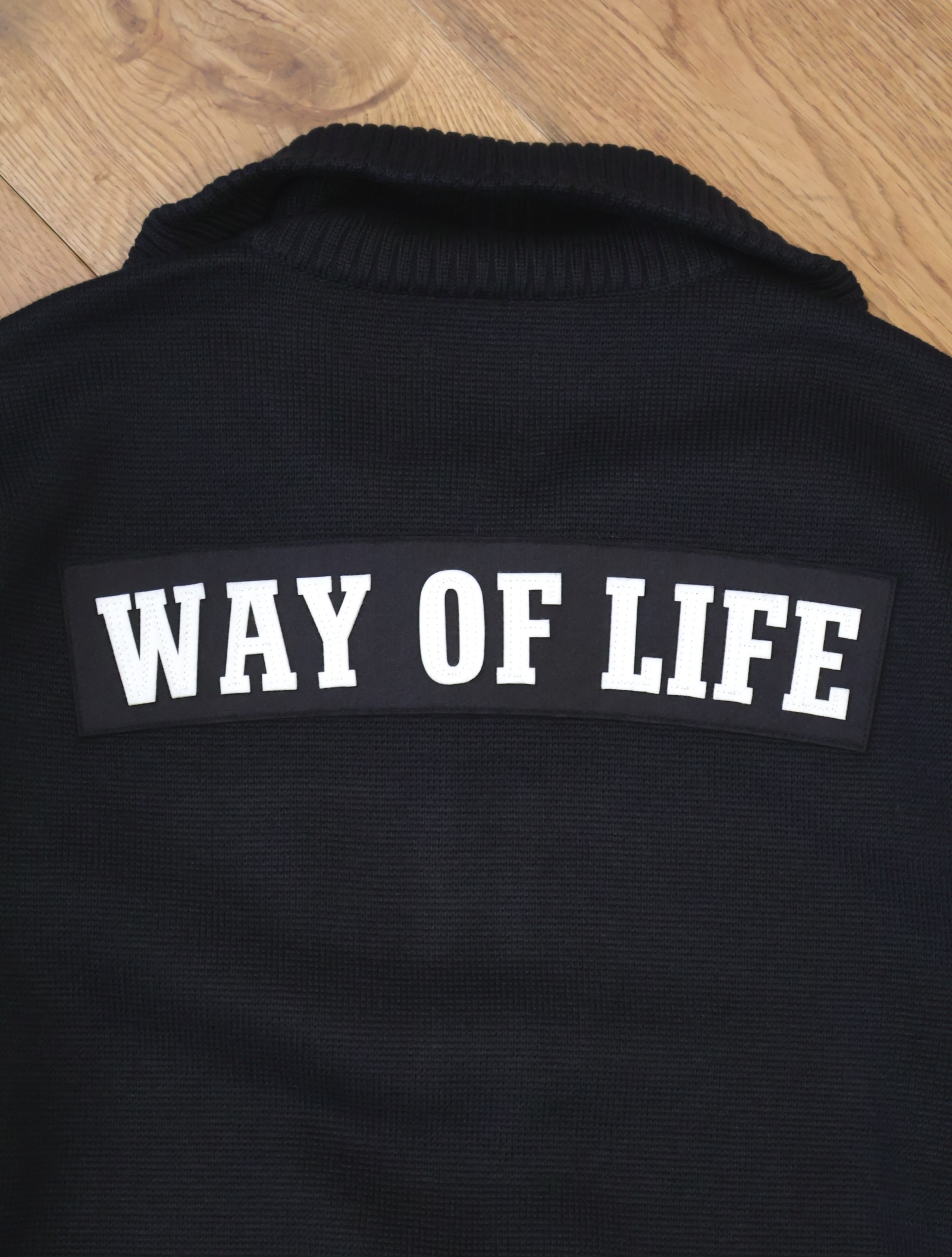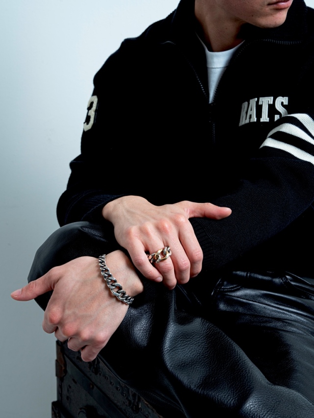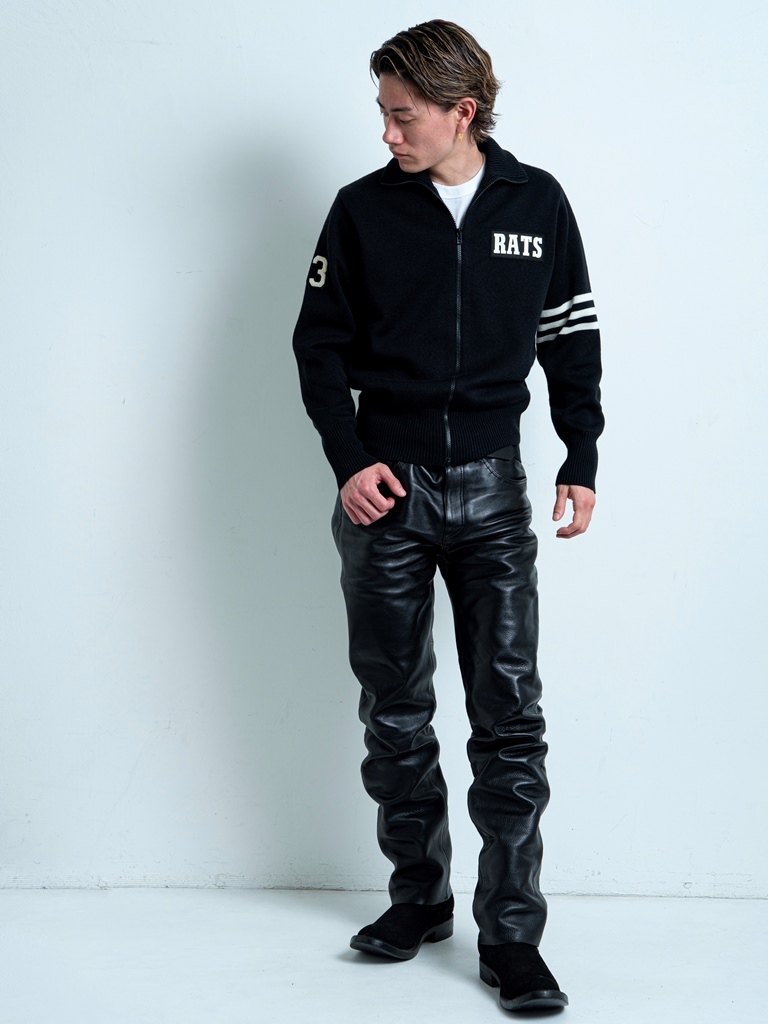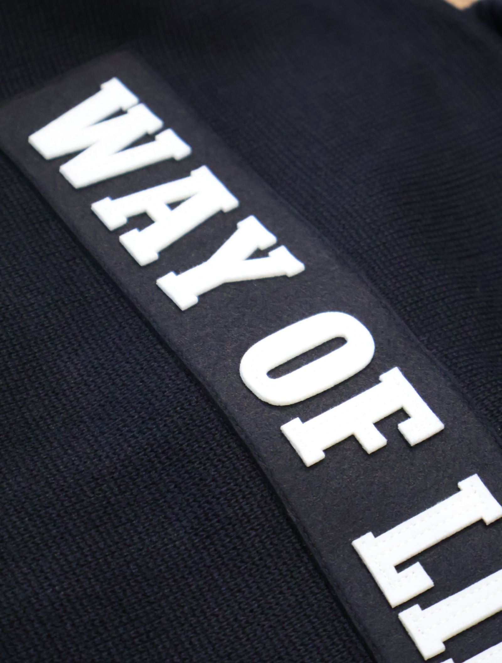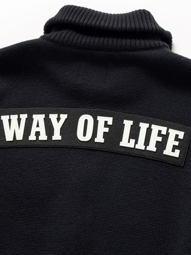 生地はしっかりとした肉感で編み上げられており、左胸にRATS・背面ヨークにWAY OF LIFEのフェルトパッチ、右袖に“03”ナンバリングのサガラワッペンを配置。