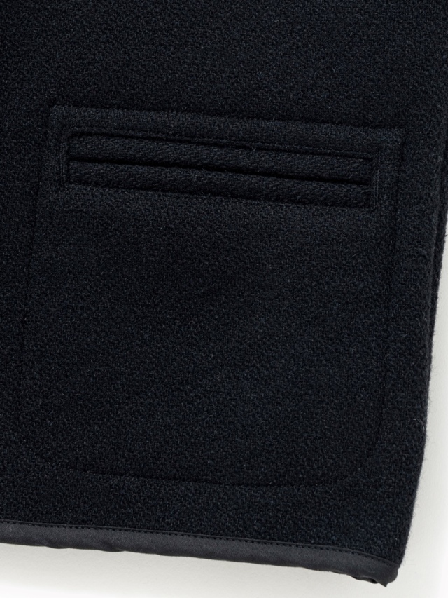 襟・前立て・裾、アームホールにはパイピングを施しており、WALDESジップを使用する等細部にも拘っています。