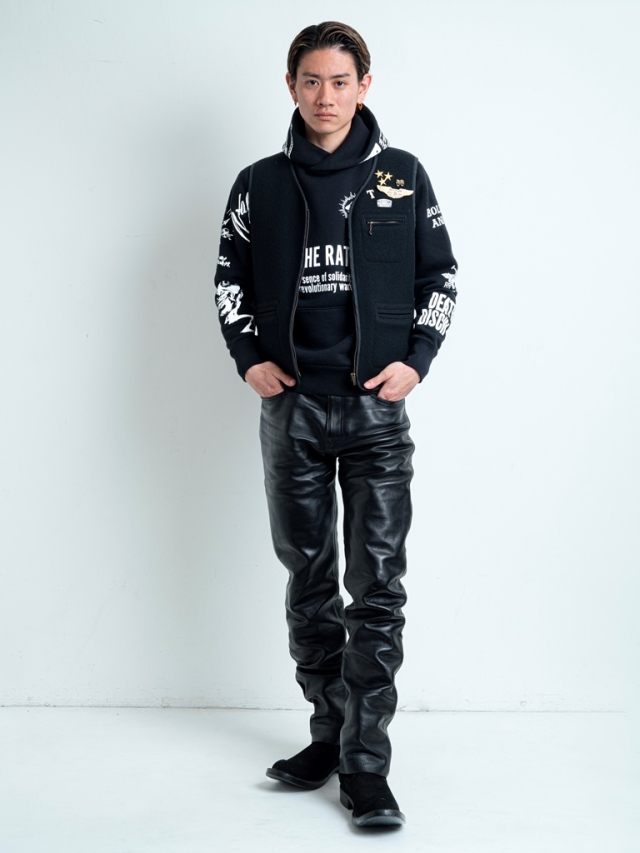 オイルカットしたメルトンウール素材を使用した、RATSが定番でリリースするジップベストです。