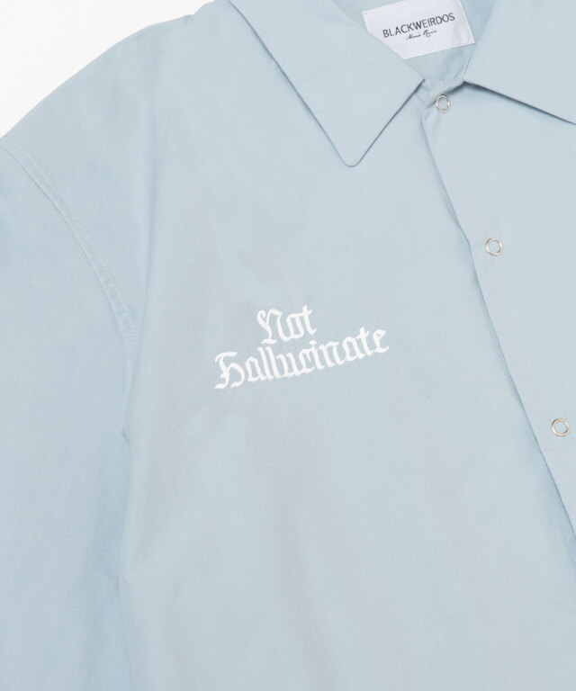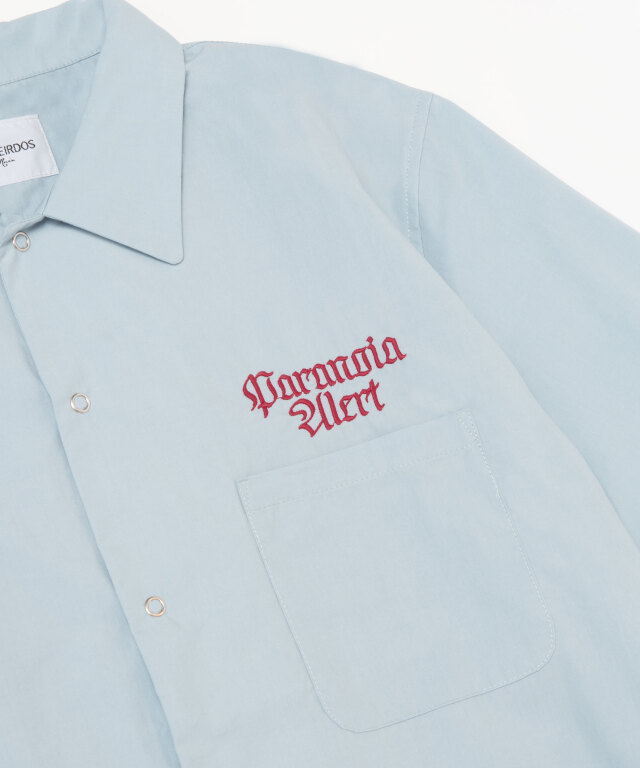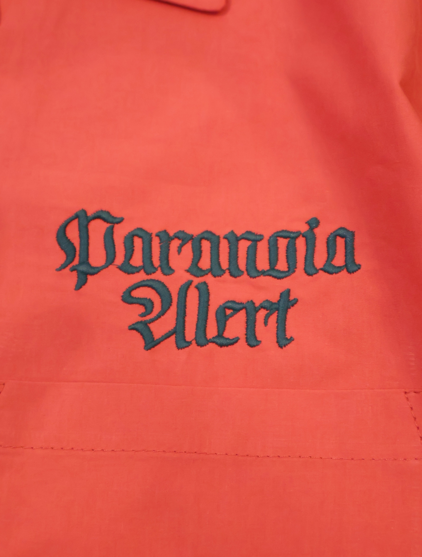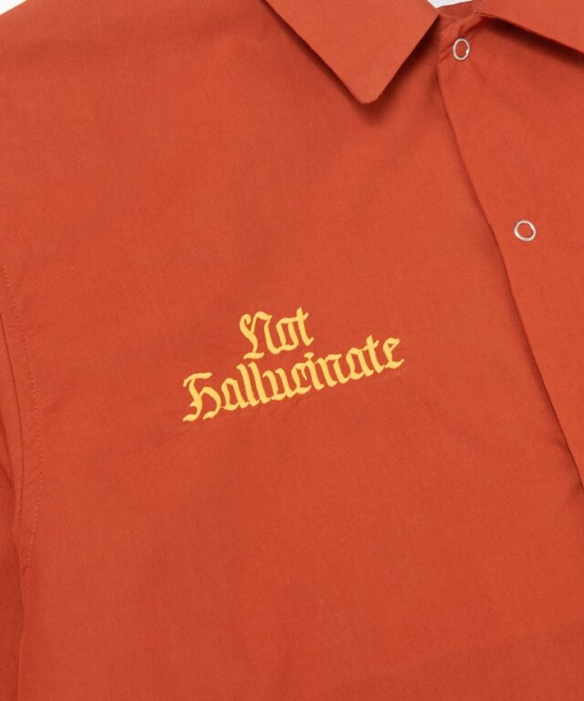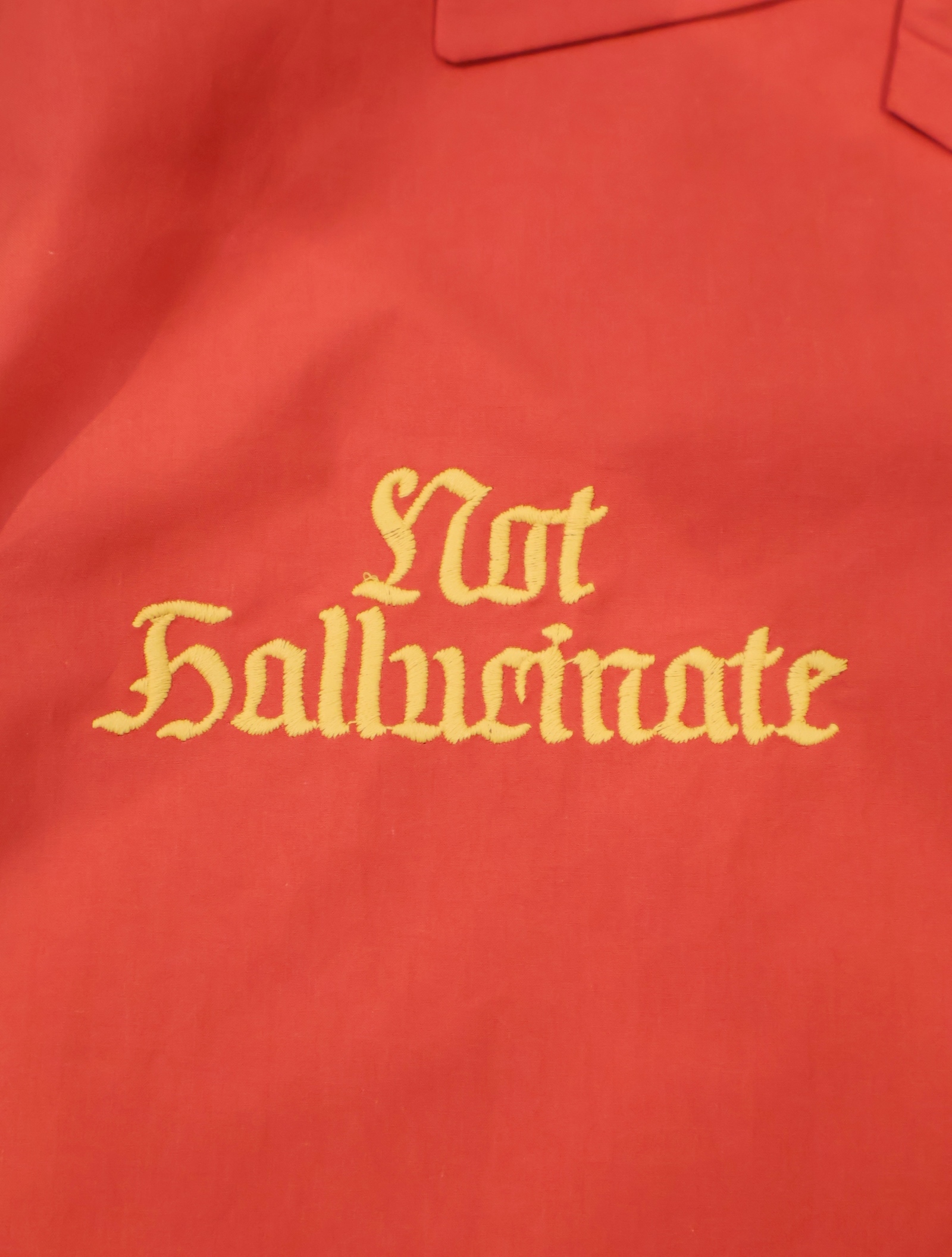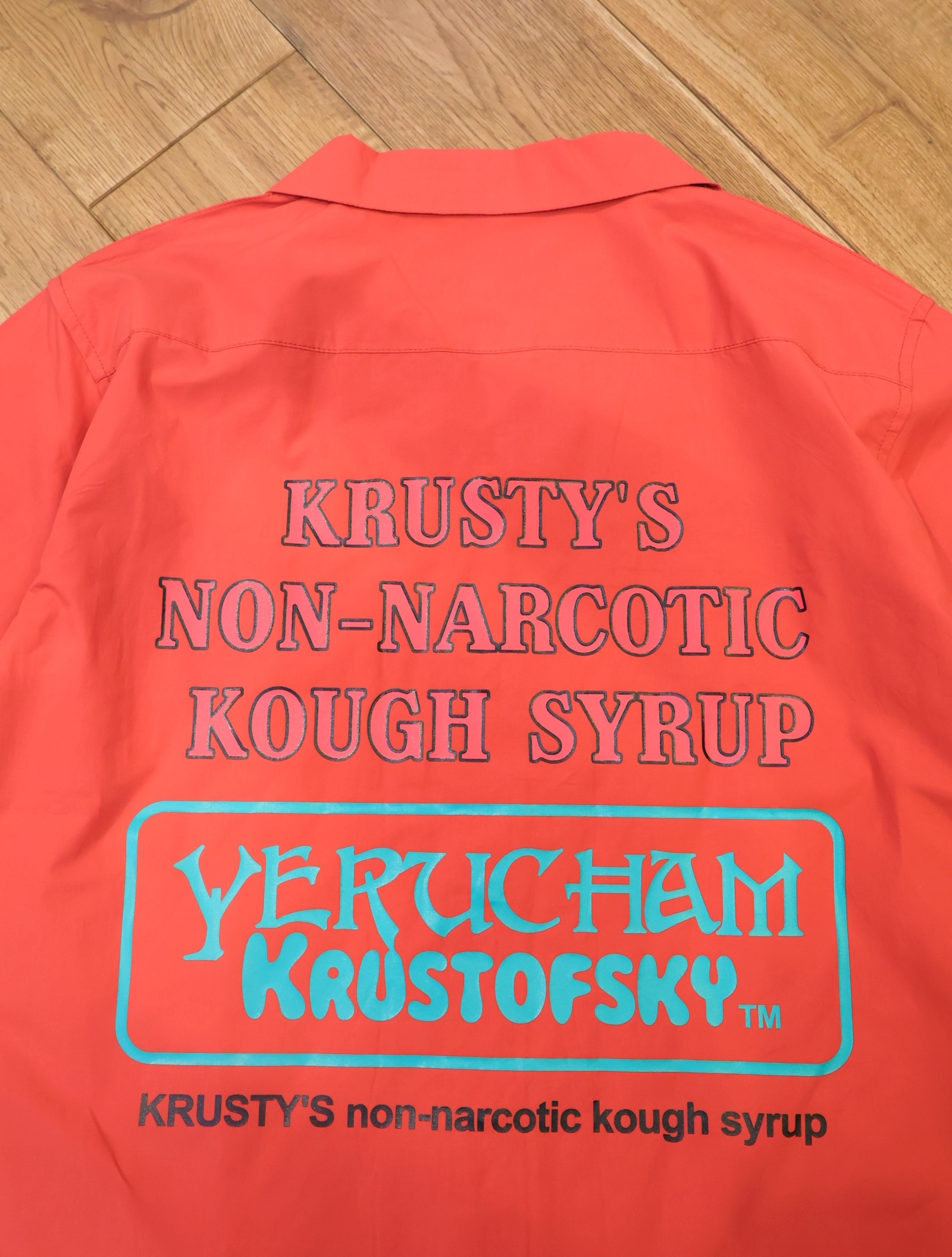 スナップボタン仕様、両胸にワンポイント刺繍、背中には名物”クラスティー 非麻薬 咳止めシロップ”の広告がプリント。