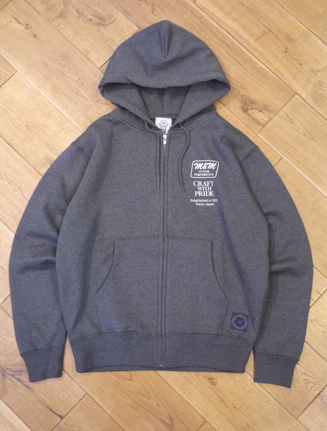12.4オンスのタフで肉厚な裏起毛素材を使用したスウェットジップアップフーディーです。