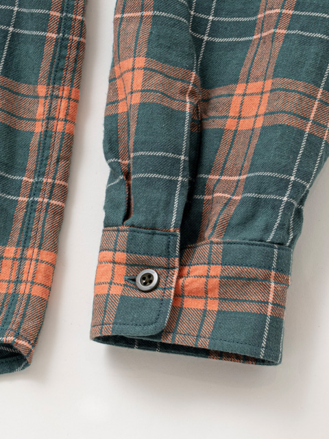 袖はイッテコイ始末、ボタンはGREEN CHECKと同系色のカラーを採用。