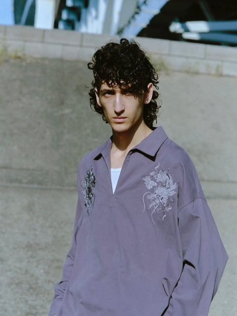 フロントの両胸に配置されたオリジナルでデザインされたドラゴンの刺繍が特徴的な1枚。