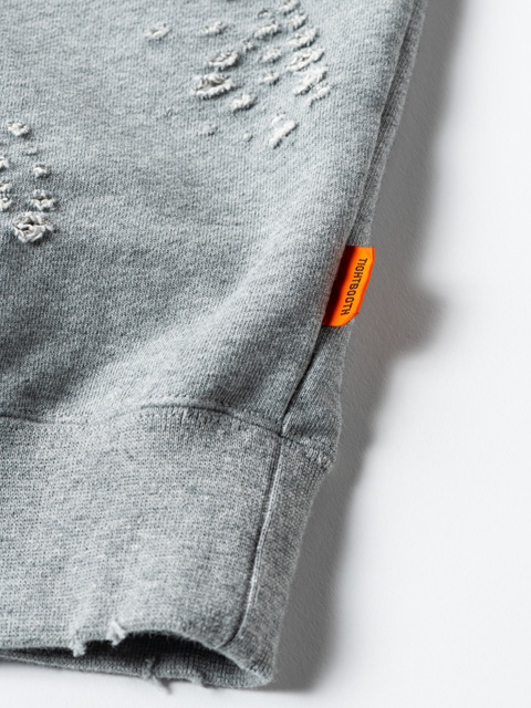 プロスケーターである上野伸平が立ち上げた、日本のスケートボードプロダクションTIGHTBOOTH とのコラボレーションアイテムとして、全体に施されたダメージ加工が特徴的なクルーネックスウェットシャツがリリースです。