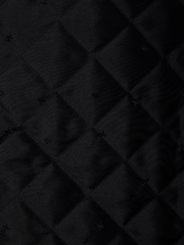 裏地にはブランドロゴの入った滑りの良いポリエステル素材を使用し、袖通しが良く、薄中綿をキルティングで挟み込み保温性も確保しています。