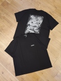 フロント左胸にブランドロゴ、バックは共同デザイナー内山氏による描き下ろしのアートピースをプリントしています。
