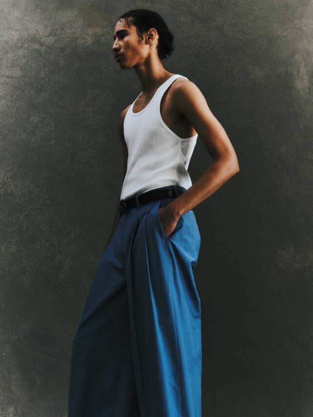 2タックのワイドストレートシルエット。