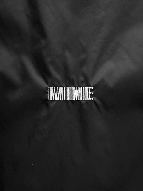 フロント左裾にブランドネームを、バック中央にはバーコードロゴ刺繍を配置し、ミニマルながら存在感のあるデザインに。