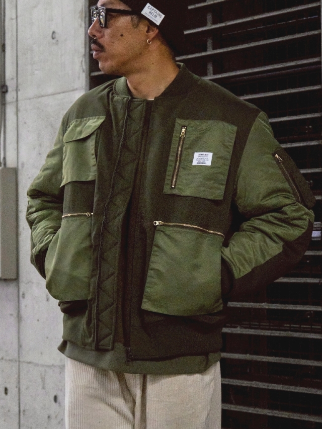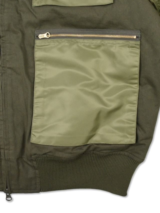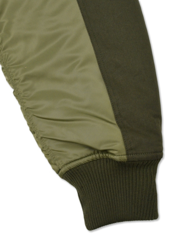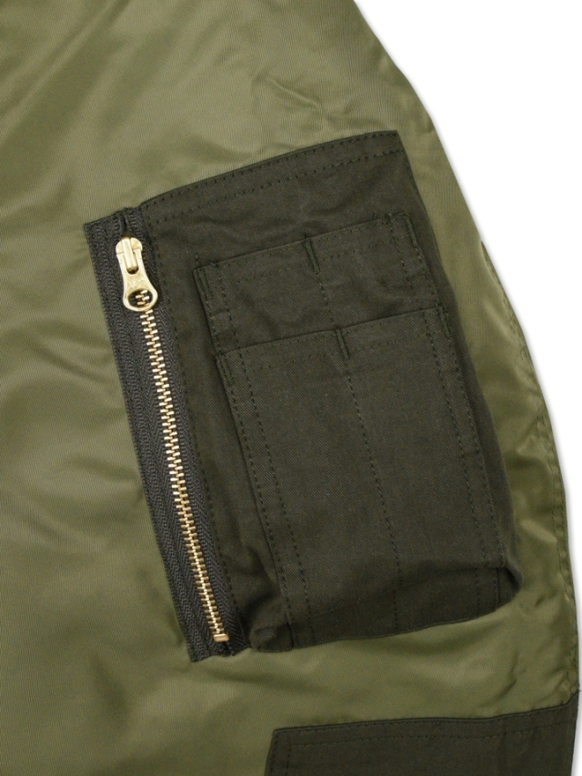 身頃をタフなツイル生地、袖やポケットをナイロン地で製作したMA-1ジャケットです。