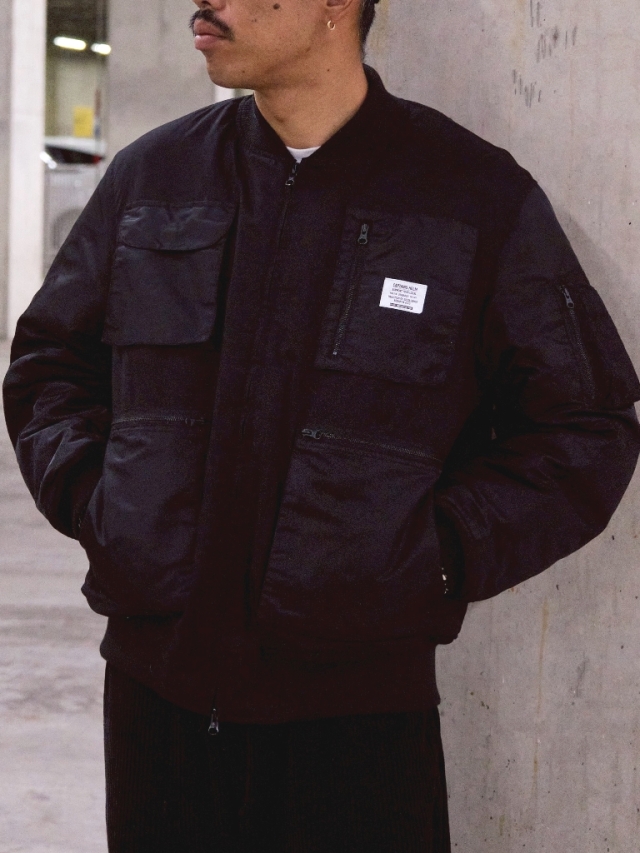 クラシックなMA-1シルエットよりもレイヤードし易く、腕通しが良いようにリラックスシルエットに調整されています。
