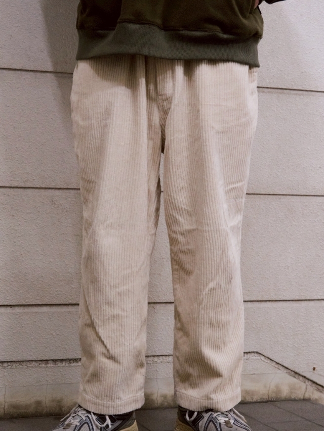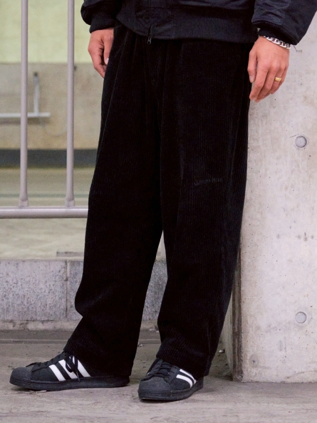 光沢があり、高級感のある太畝コーデュロイを採用したリラックスワイドパンツです。