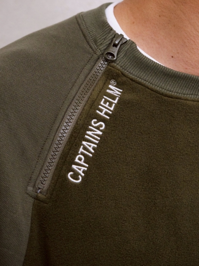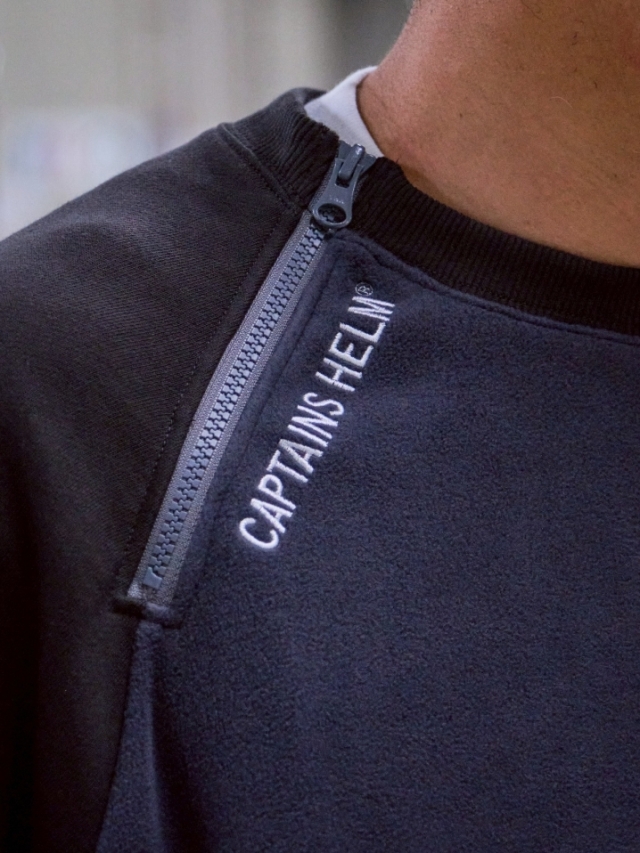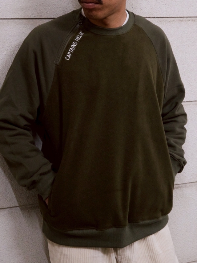 身頃を柔らかいフリース地を採用し、袖部分をスムースなスウェット地を採用した2トーンのテックスウェットです。