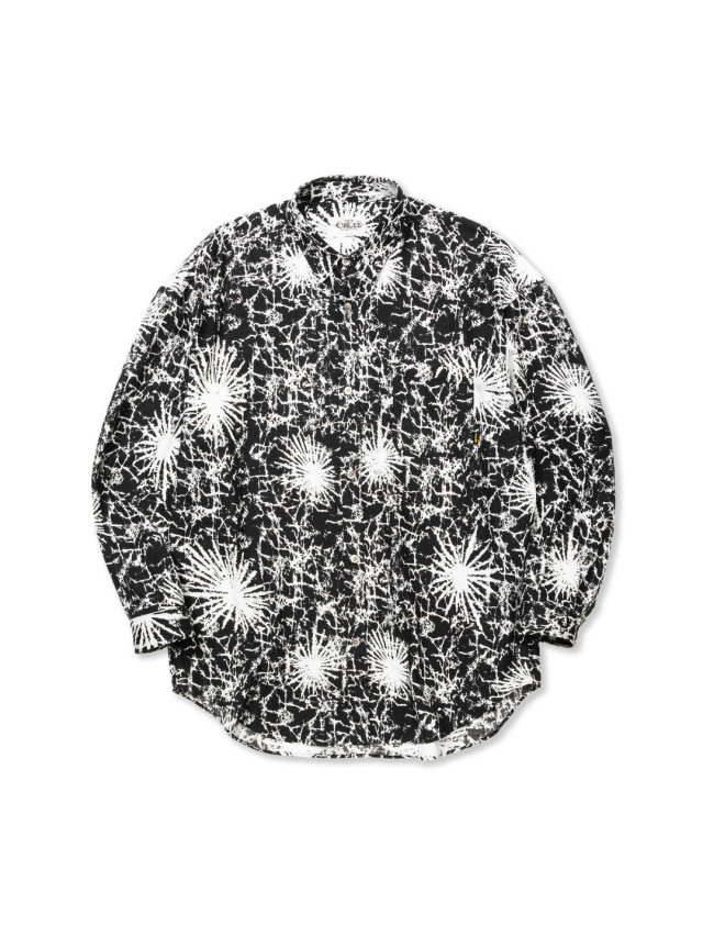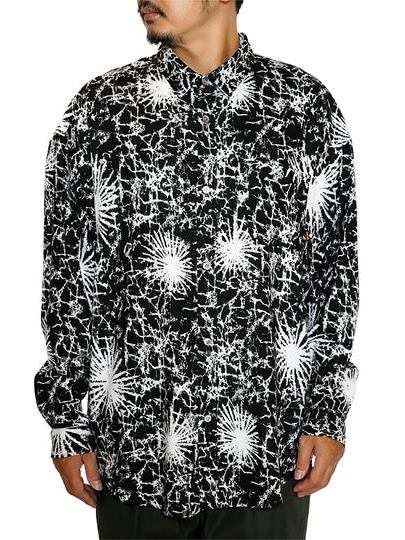 Rayon 81% Polyester 19%の混紡糸で作製された台襟仕様のオーバーサイズシャツです。