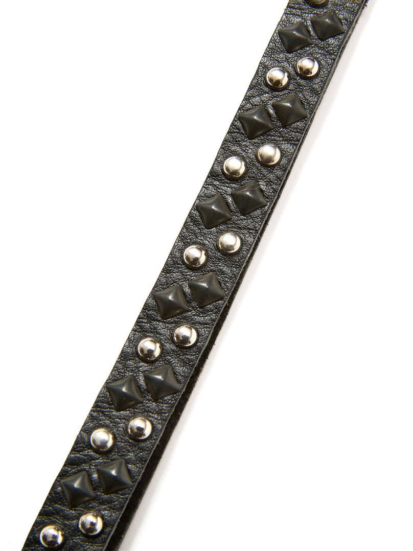 ブラックのピラミッド型スタッズ、シルバーのラウンド型スタッズを組み合わせたデザインワーク。