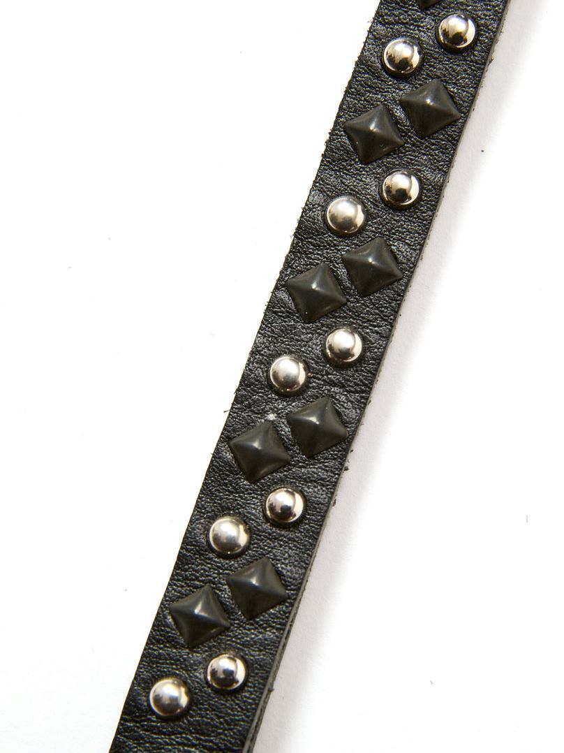 ブラックのピラミッド型スタッズ、シルバーのラウンド型スタッズを組み合わせたデザインワーク。