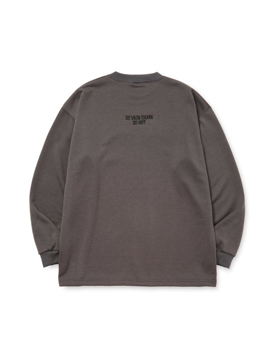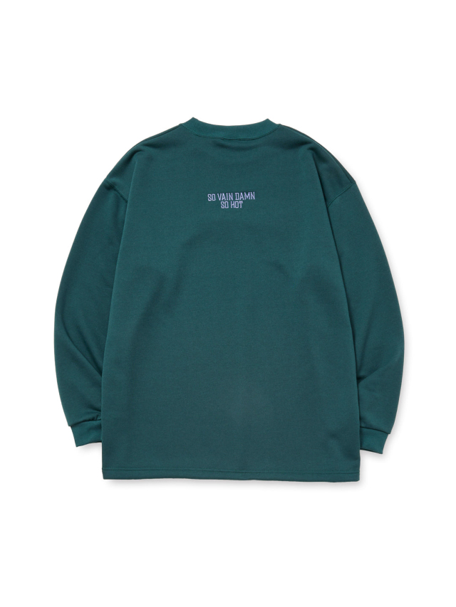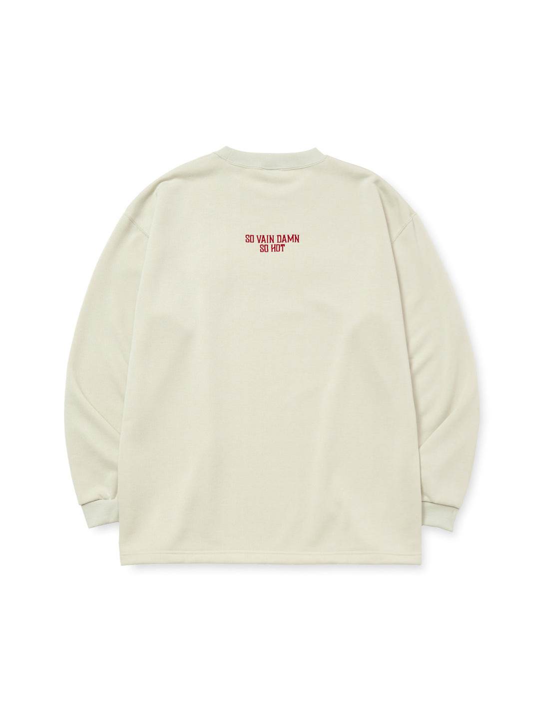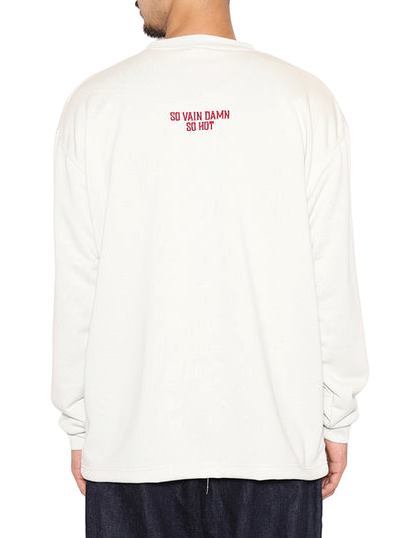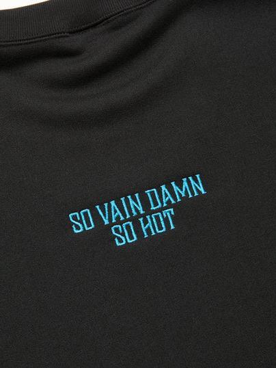 フロント左胸にブランドロゴ、首後ろに"SO VAIN DAMN SO HOT"が刺繍で入るシンプルなデザイン。