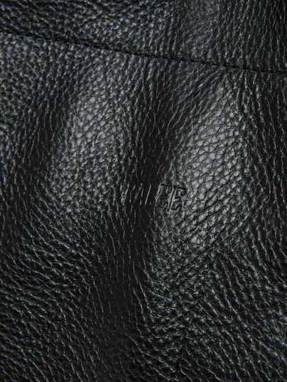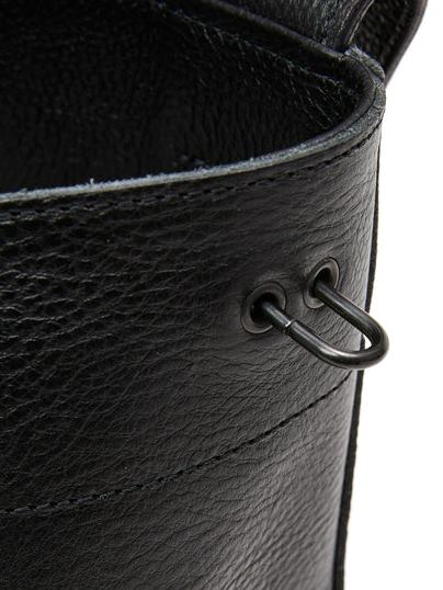 本体背面にはブランドロゴが型押しで入り、キーリング等をぶら下げるためのパーツも付属します。