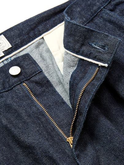 スラッシュポケット、ヒップポケットは片玉縁仕様で一般的なデニムパンツとは異なるディテールで作製。