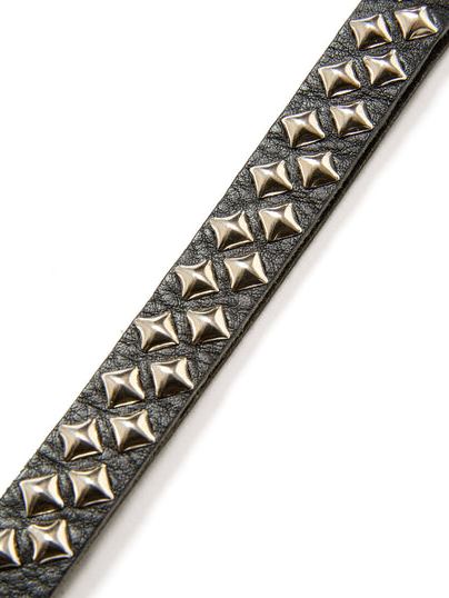シルバーのピラミッド型スタッズを打ち込んでおり、裏面にはブランドネームの刻印が入るデザインワーク。