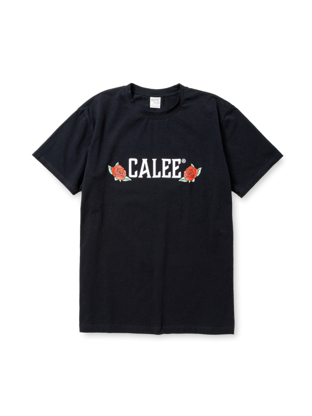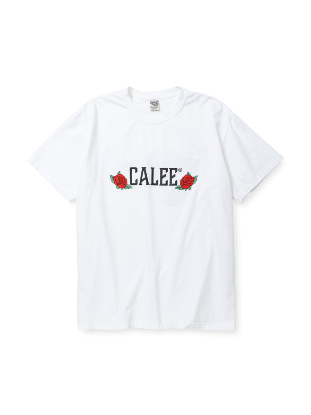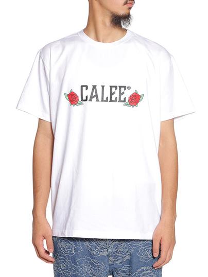 CALEE オリジナルの30/1コーマベア天竺で作製されたストレッチボディーを使用したプリントティーシャツ。