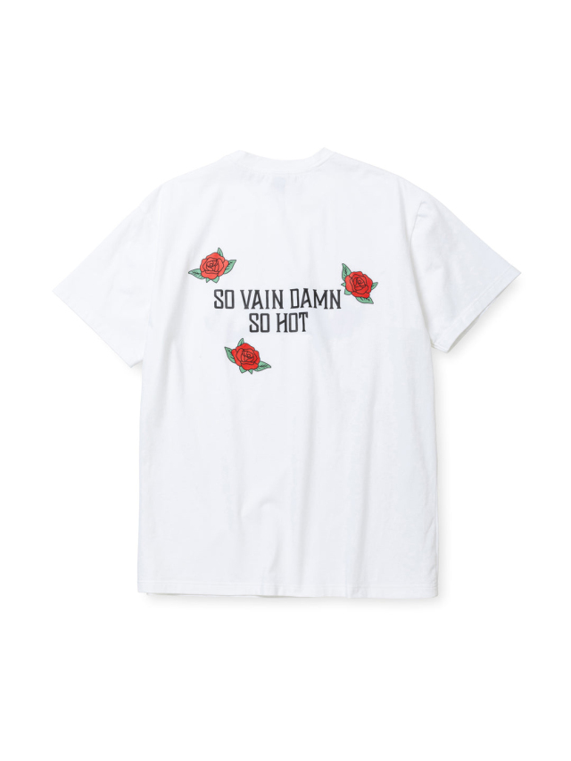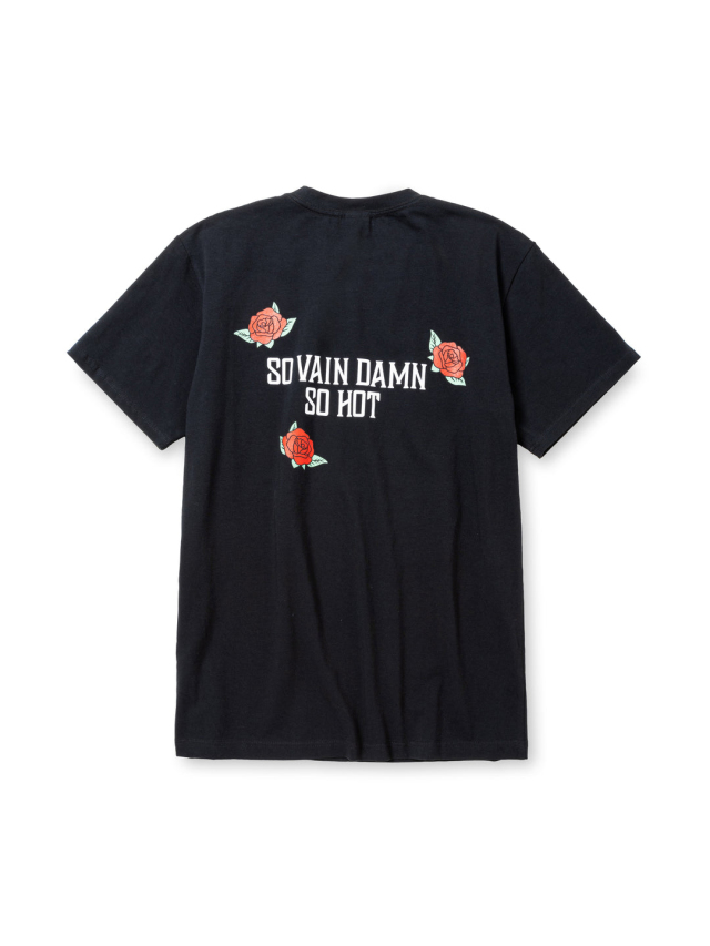 フロントにブランドロゴ、バックには"SO VAIN DAMN SO HOT"とそれぞれローズグラフィックがプリントで入るデザイン。