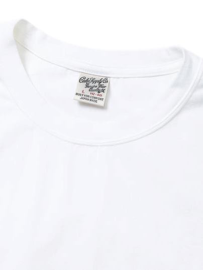 コットンにポリウレタンを配合する事により、柔らかな着心地と、伸びやよれががでにくいボディーに仕上がっています。