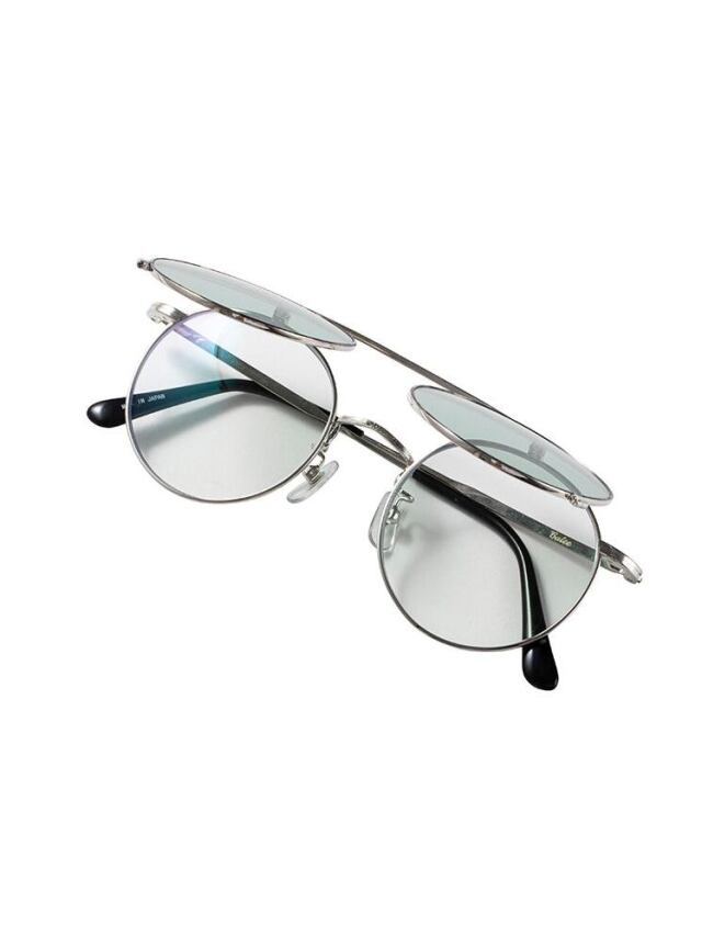 メガネの一大産地である福井県鯖江で職人によるハンドメイドで作製されたフリップアップタイプのサークルタイプグラシーズ。