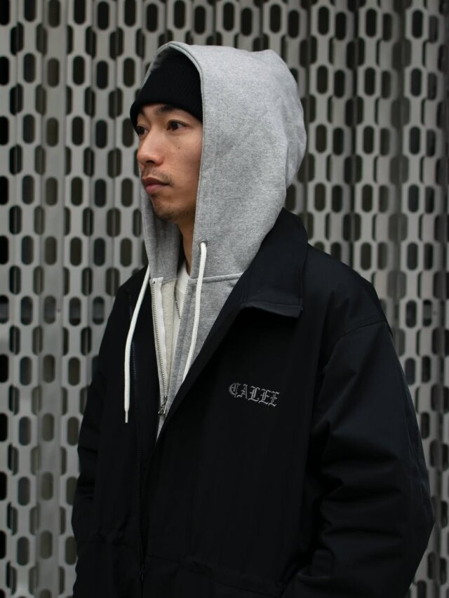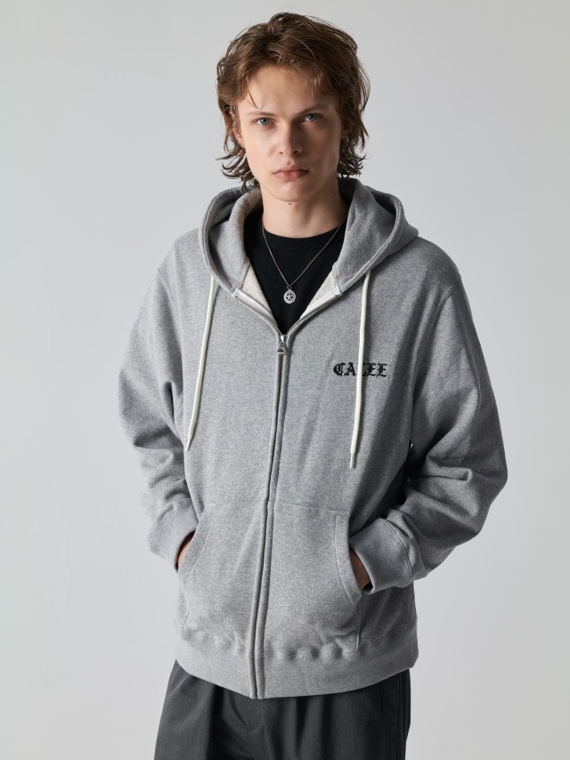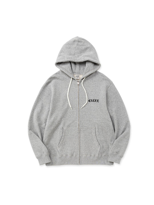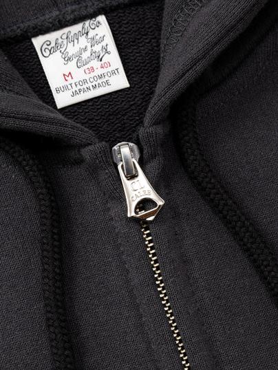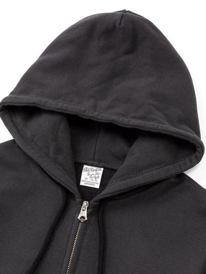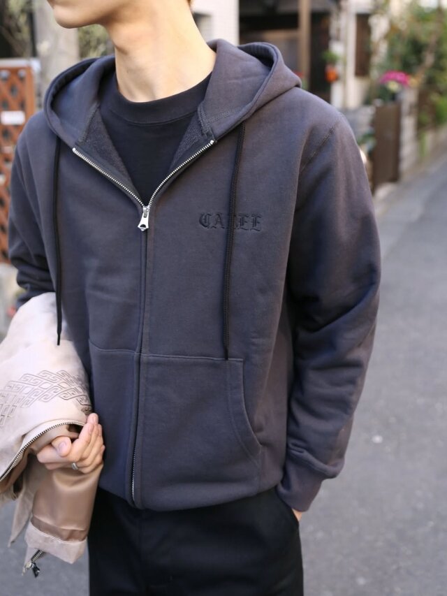 オリジナルのスウェット素材を使用し作製されたジップフーディー。
