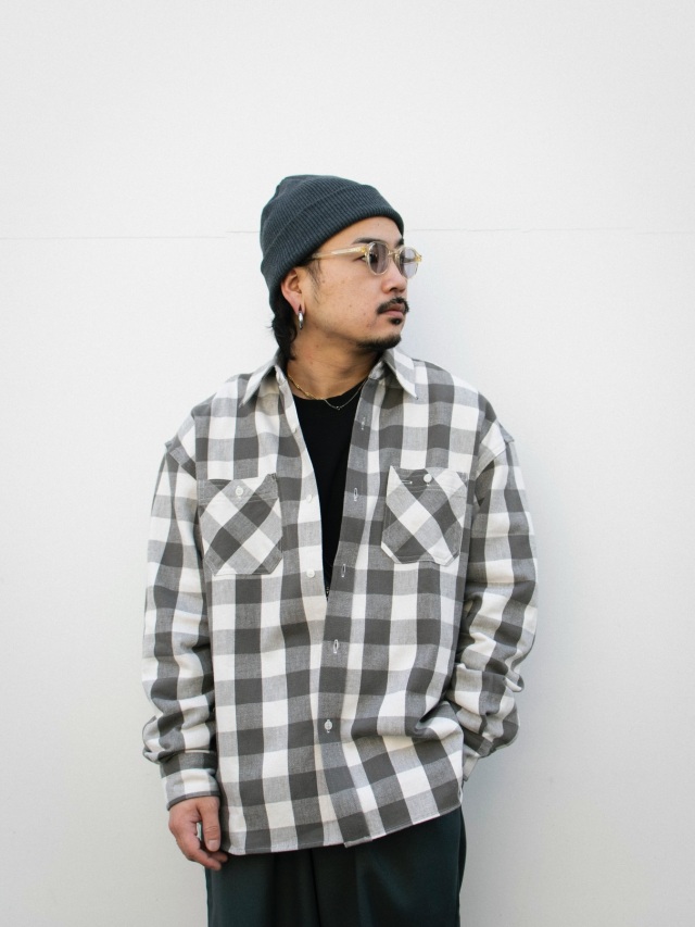 1940年代のHERCULES社製チェックシャツを分析し、国内先染め織物の産地兵庫県西脇市にてオリジナル生地を作製。
