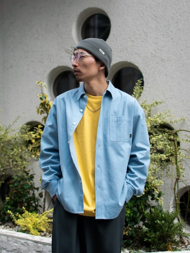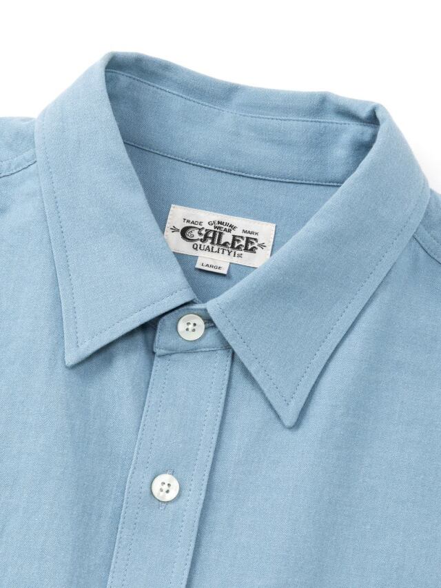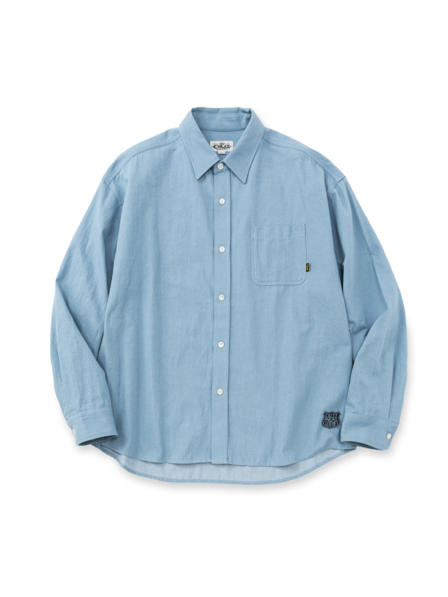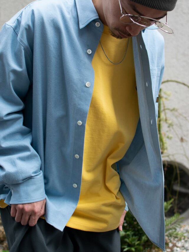 ライトオンスのカラーデニムを使用し作製されたレギュラーカラーロングスリーブシャツです。