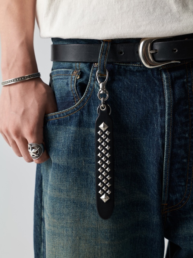 レザーにピラミッド型スタッズを施した定番のデザイン。