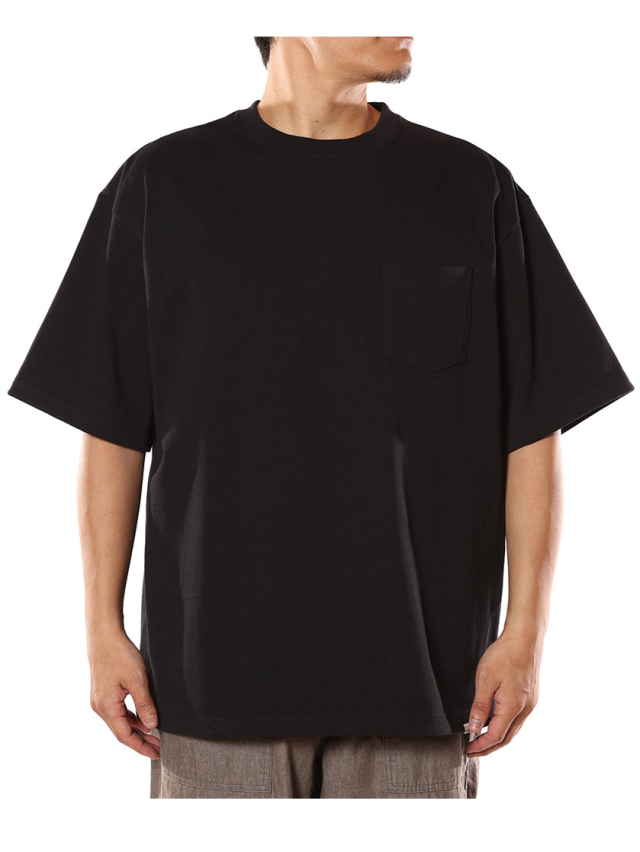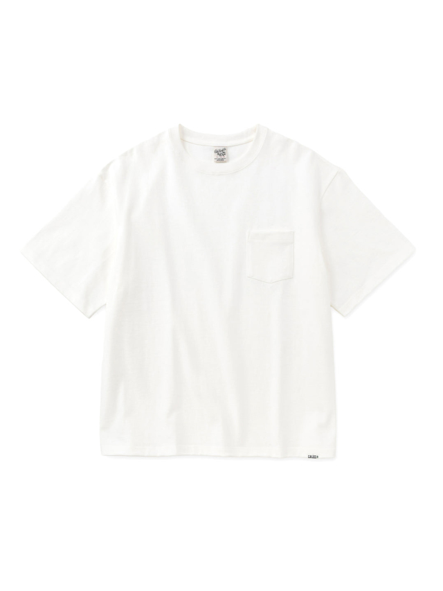 ヘビーオンスの米綿の17/-引き揃え天竺を使用し作製されたポケットティーシャツ。