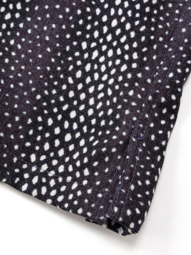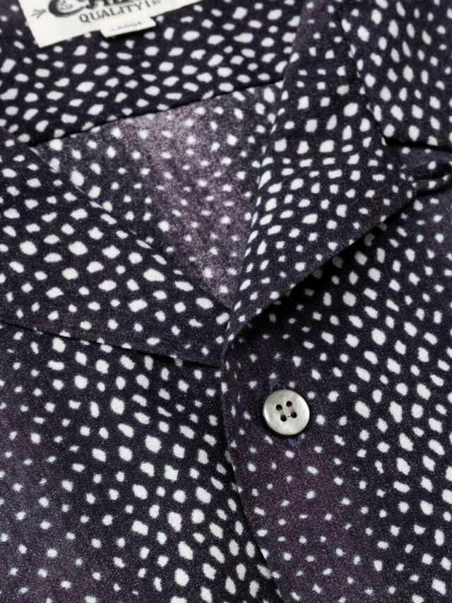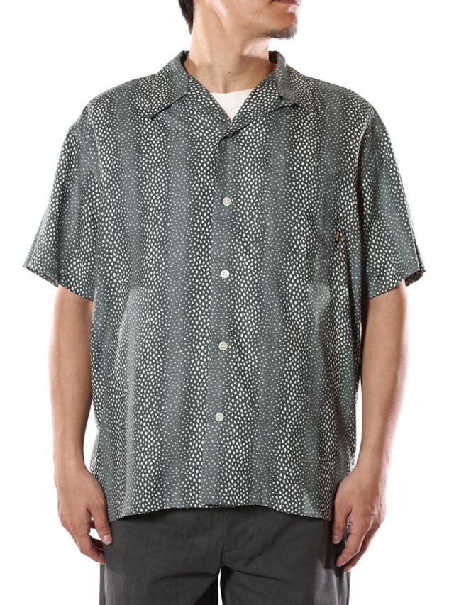 Rayon 81% Polyester 19%の混紡糸で作製されたオープンカラーレーヨンシャツです。