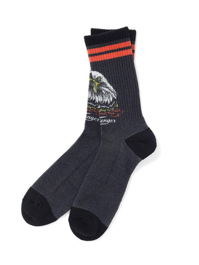 ユーズド感のあるブラックカラーで、足首フロントにはイーグルのグラフィックがジャガードで入ります。