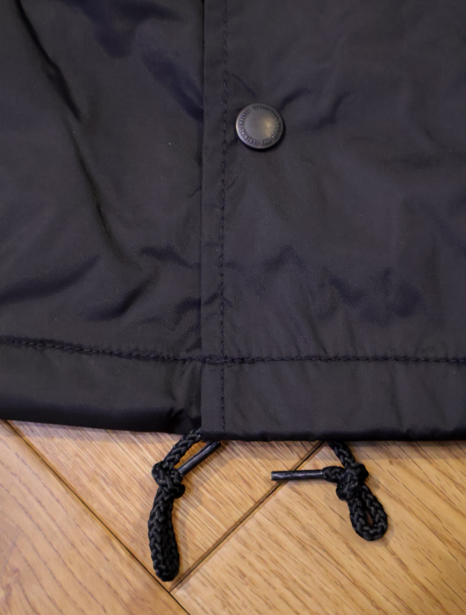 オリジナルスナップボタンを使用し、裾にはドローコードが付きます。