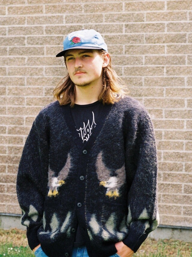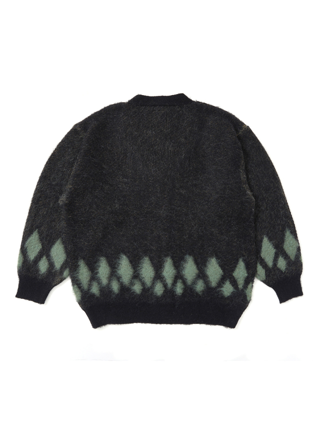 ナイロン、アクリル、モヘア、ウール混紡で作製されたニットガーディガンです。