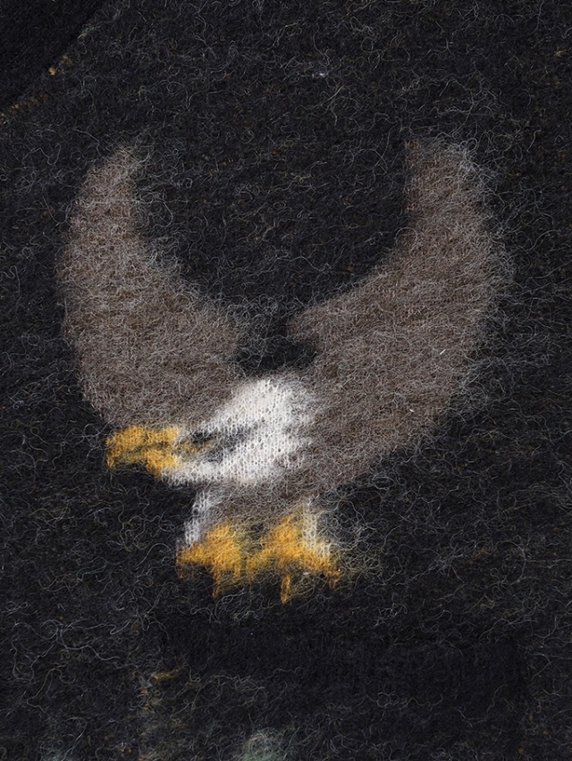 フロント両胸にはイーグル、裾と袖にもオリジナルグラフィックをジャガードで落とし込んだデザイン。