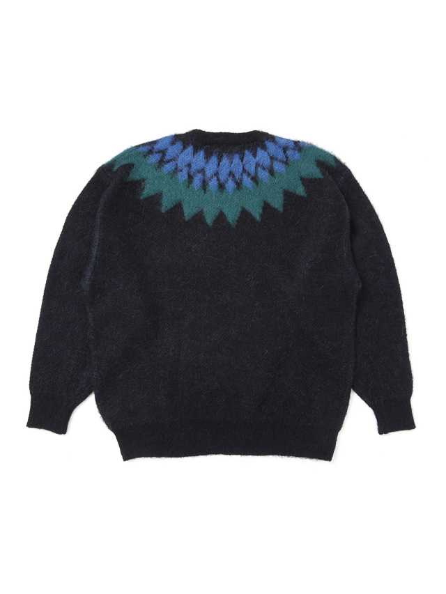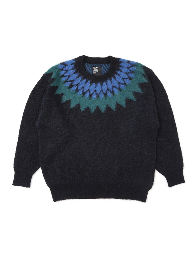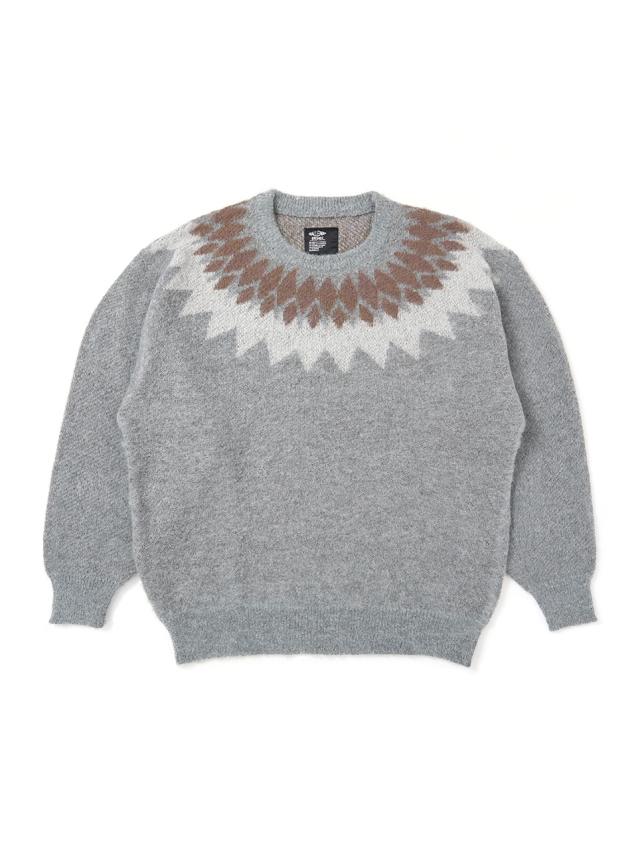 ナイロン、アクリル、モヘア、ウール混紡で作製されたクルーネックセーターです。