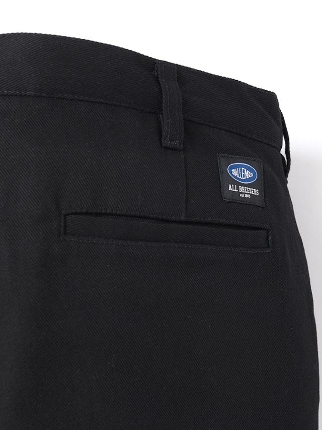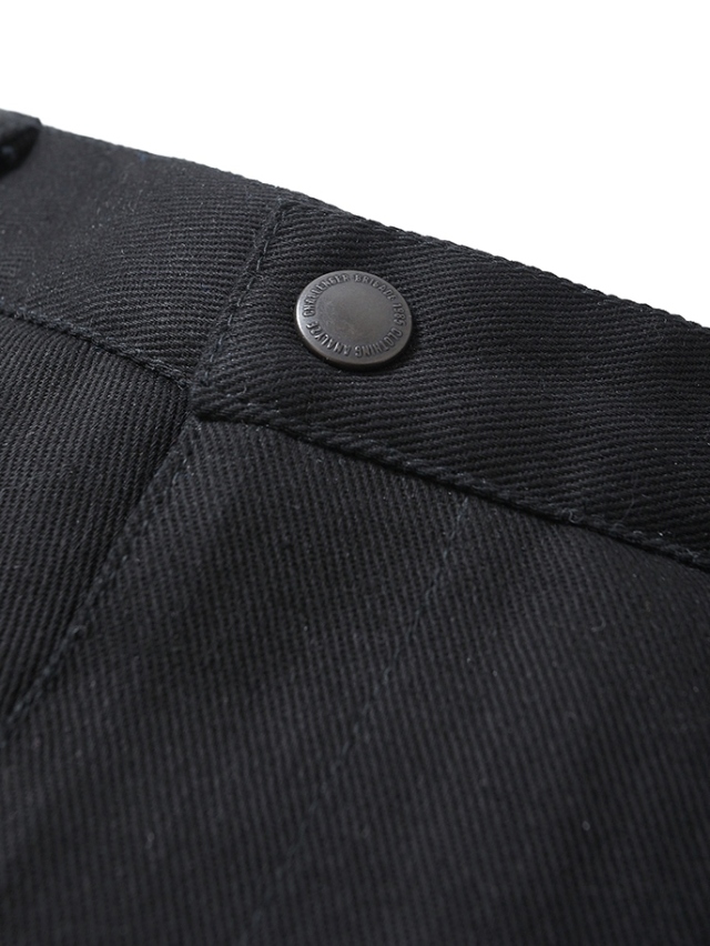 各所ボタンにはオリジナルのスナップボタンを使用しており、右のバックポケット上部にブランドタグを叩きつけたデザイン。