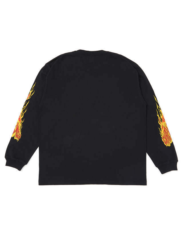 フロントにスネークモチーフのブランドロゴ、両袖には定番のフレイムスにブランドネームが組み合わされたグラフィックがプリントで入ります。