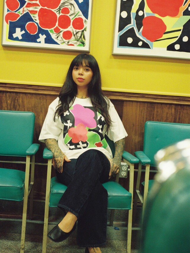 フロントにインパクトのあるフラワーモチーフのグラフィックがプリントで入るデザイン。