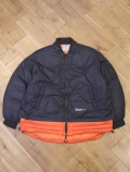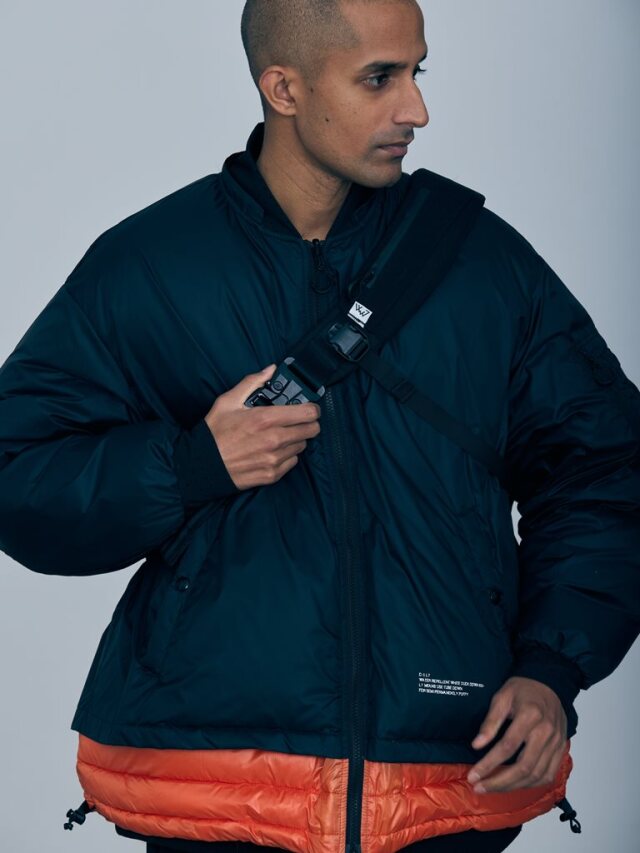 表地にPERTEX 30D 耐久撥水ナイロンを使用し、中綿にはホワイトダックダウン、850FPを95:5の比率でダウンをライニング側に封入したレイヤードジャケット。