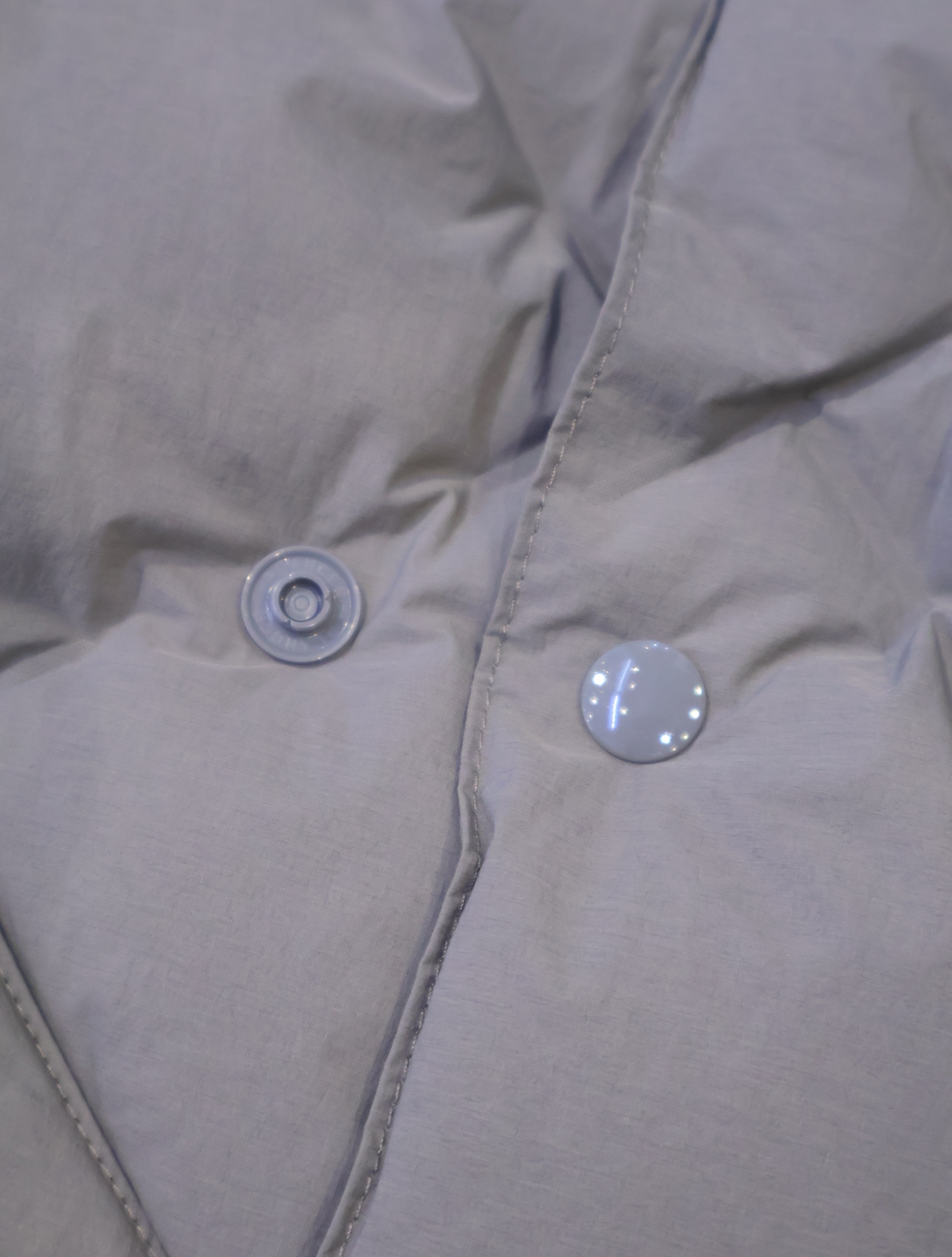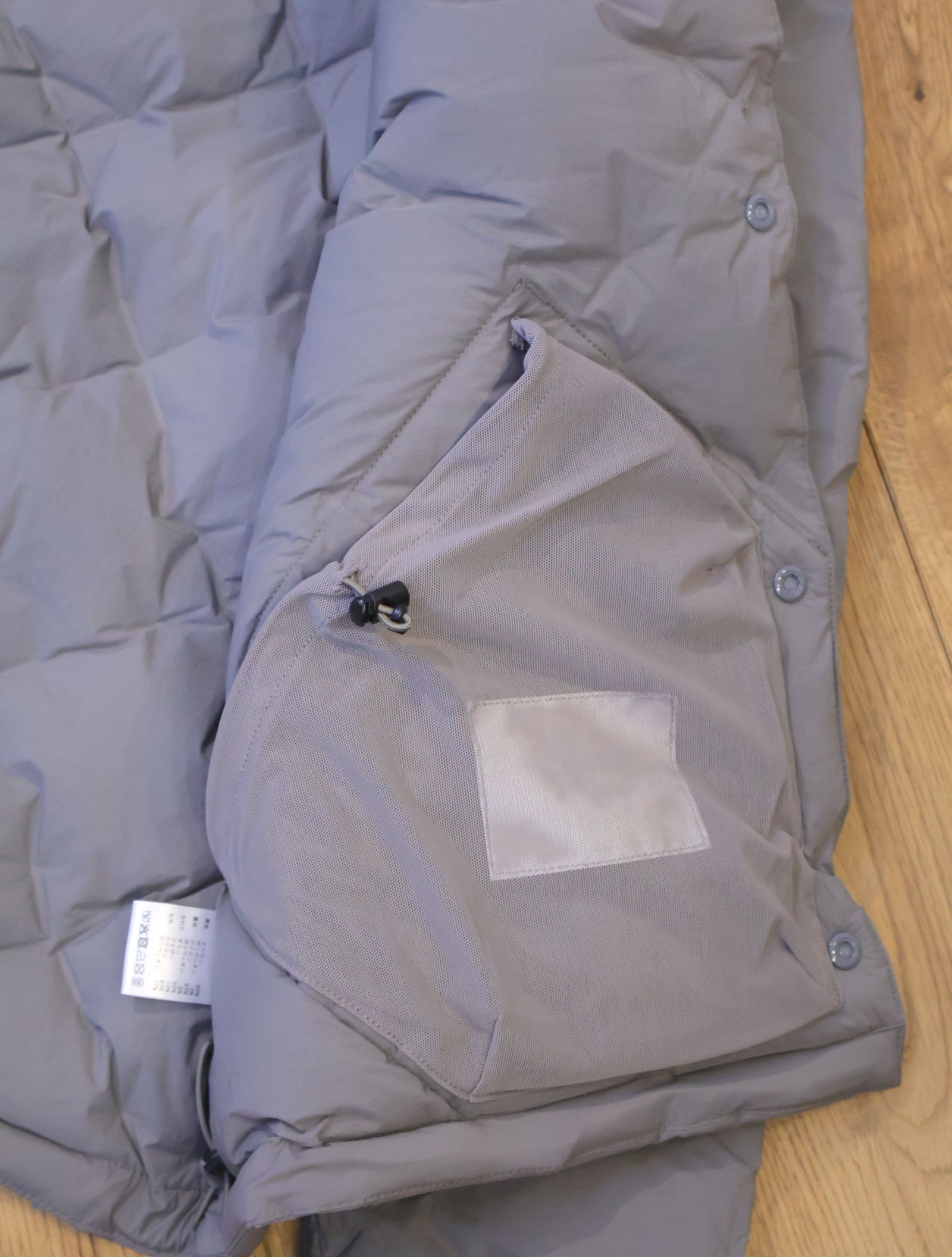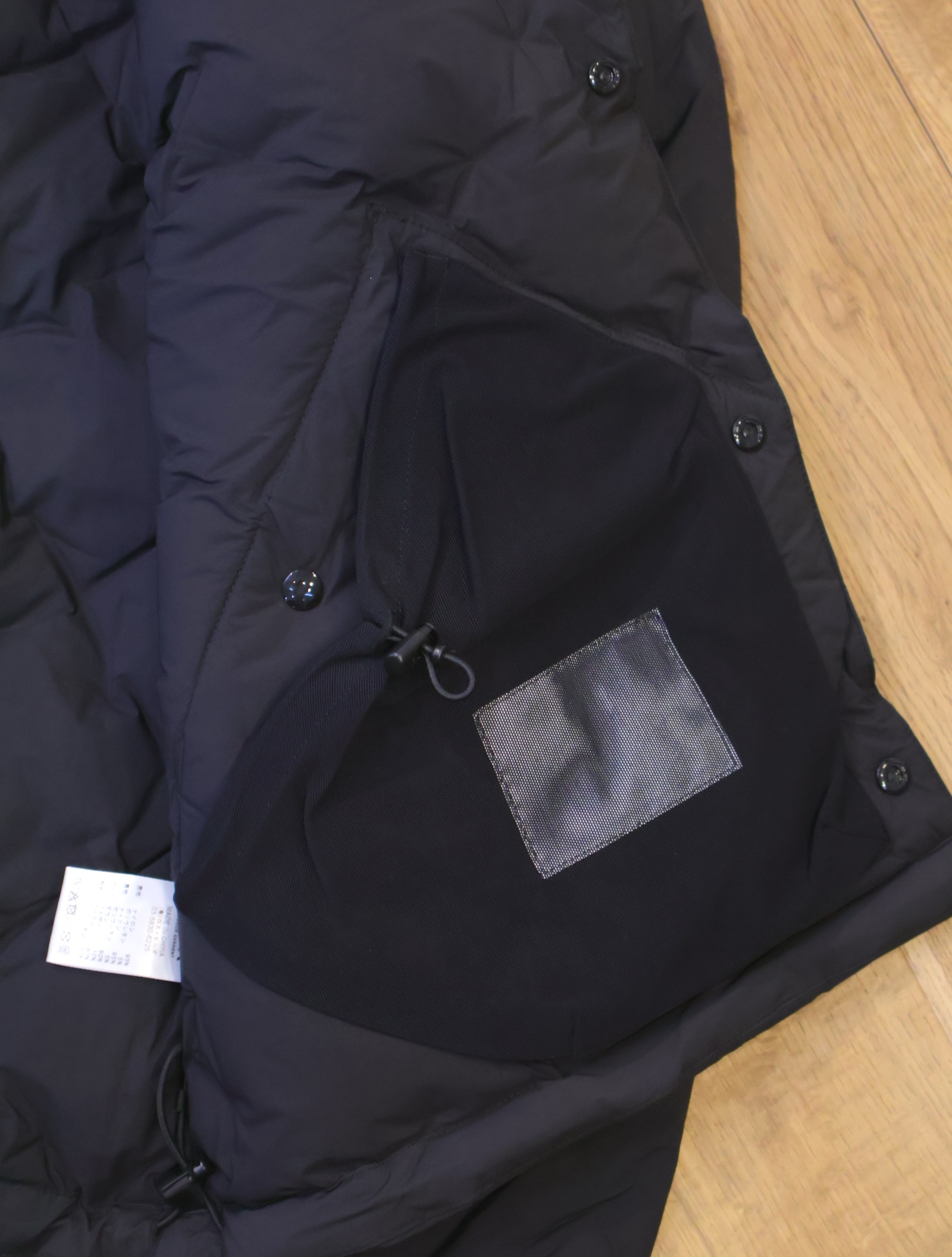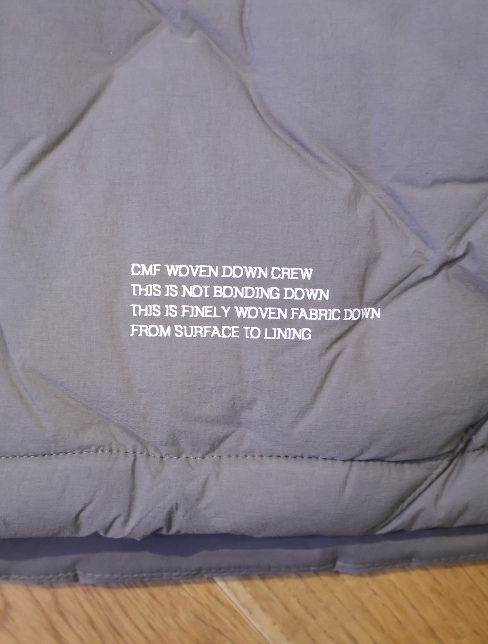 今までの圧着ダウンだと経年劣化の際、圧着部分がはじけ、そこだけにダウンが溜まってしまい、以降着れなくなりますが、この技術は織で固定しているためそういう問題が起きないようになっています。