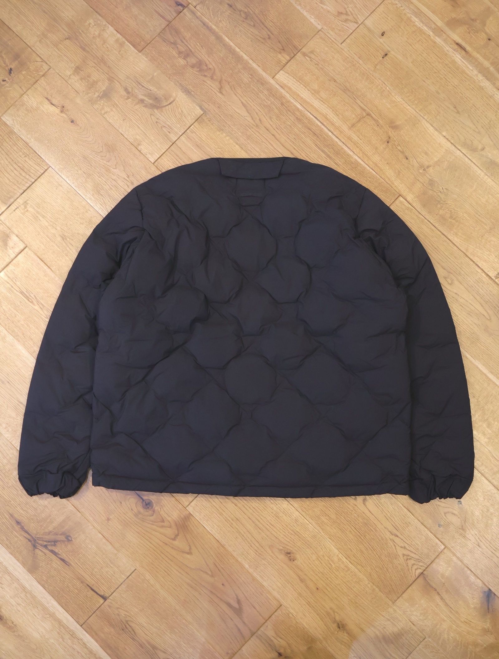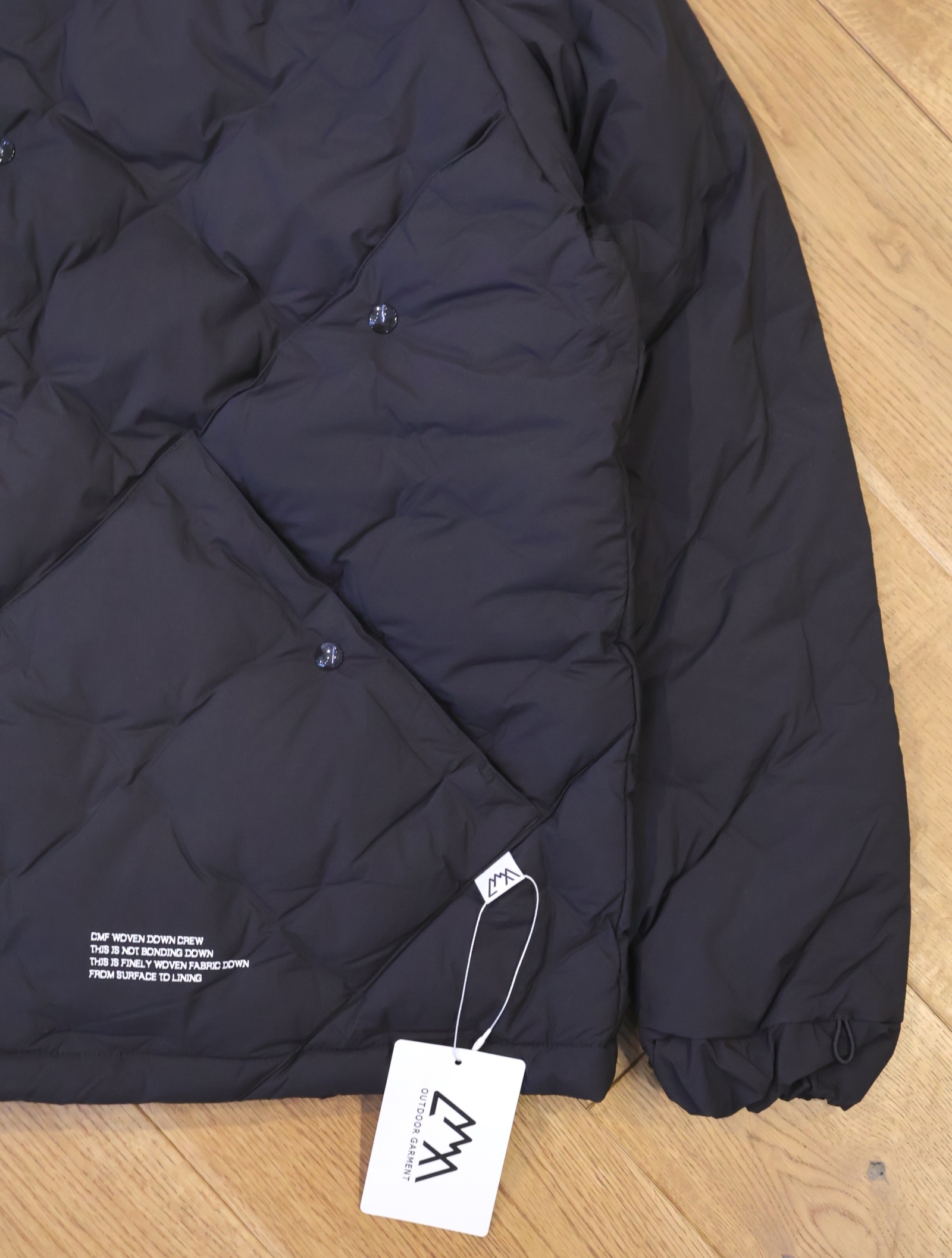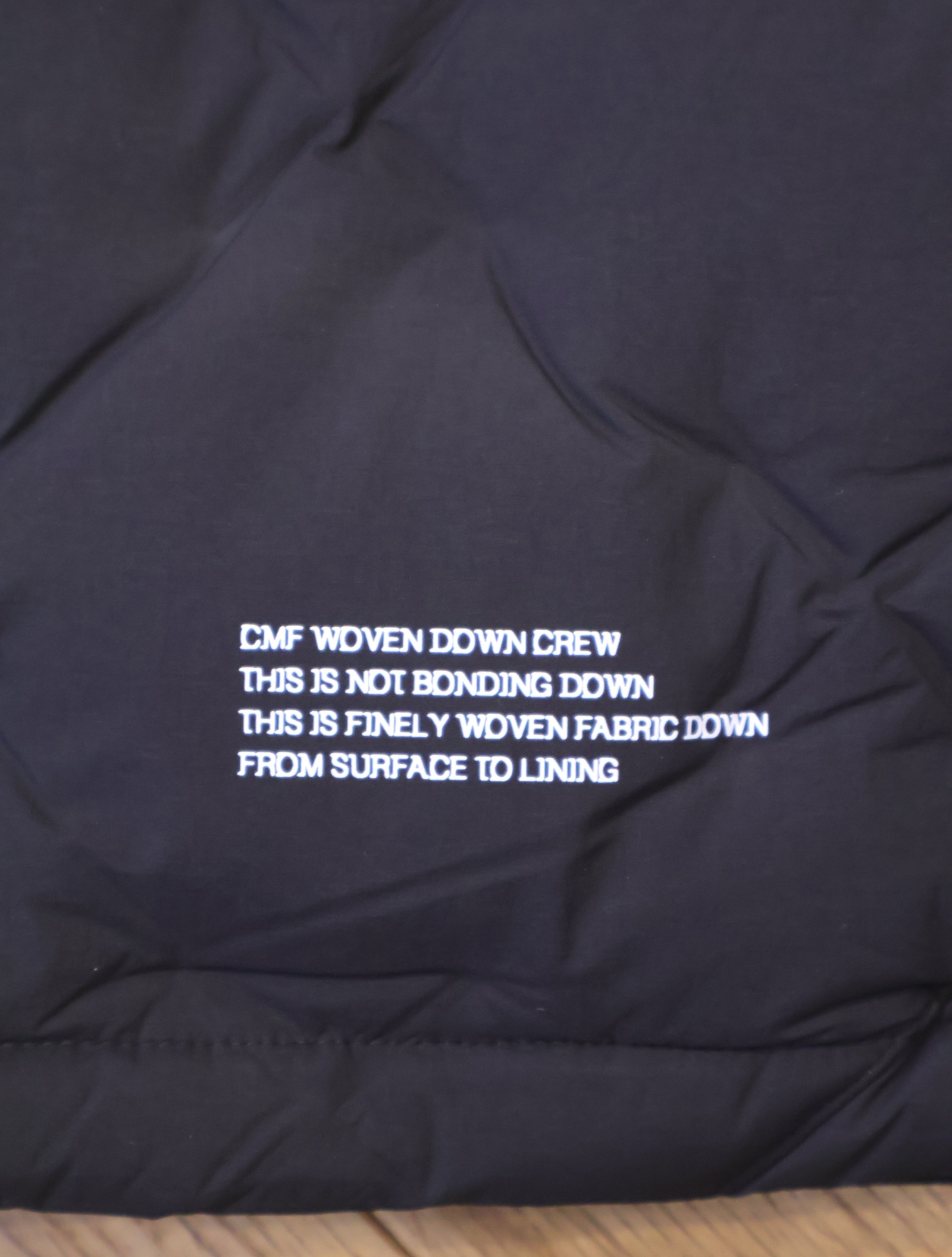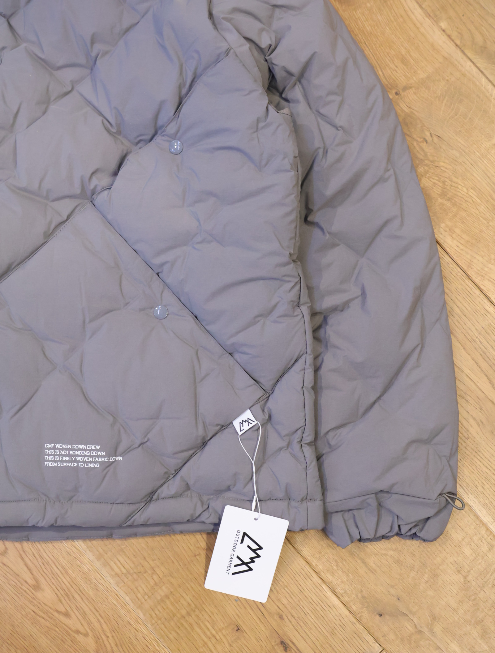 今までの圧着ダウンだと経年劣化の際、圧着部分がはじけ、そこだけにダウンが溜まってしまい、以降着れなくなりますが、この技術は織で固定しているためそういう問題が起きないようになっています。