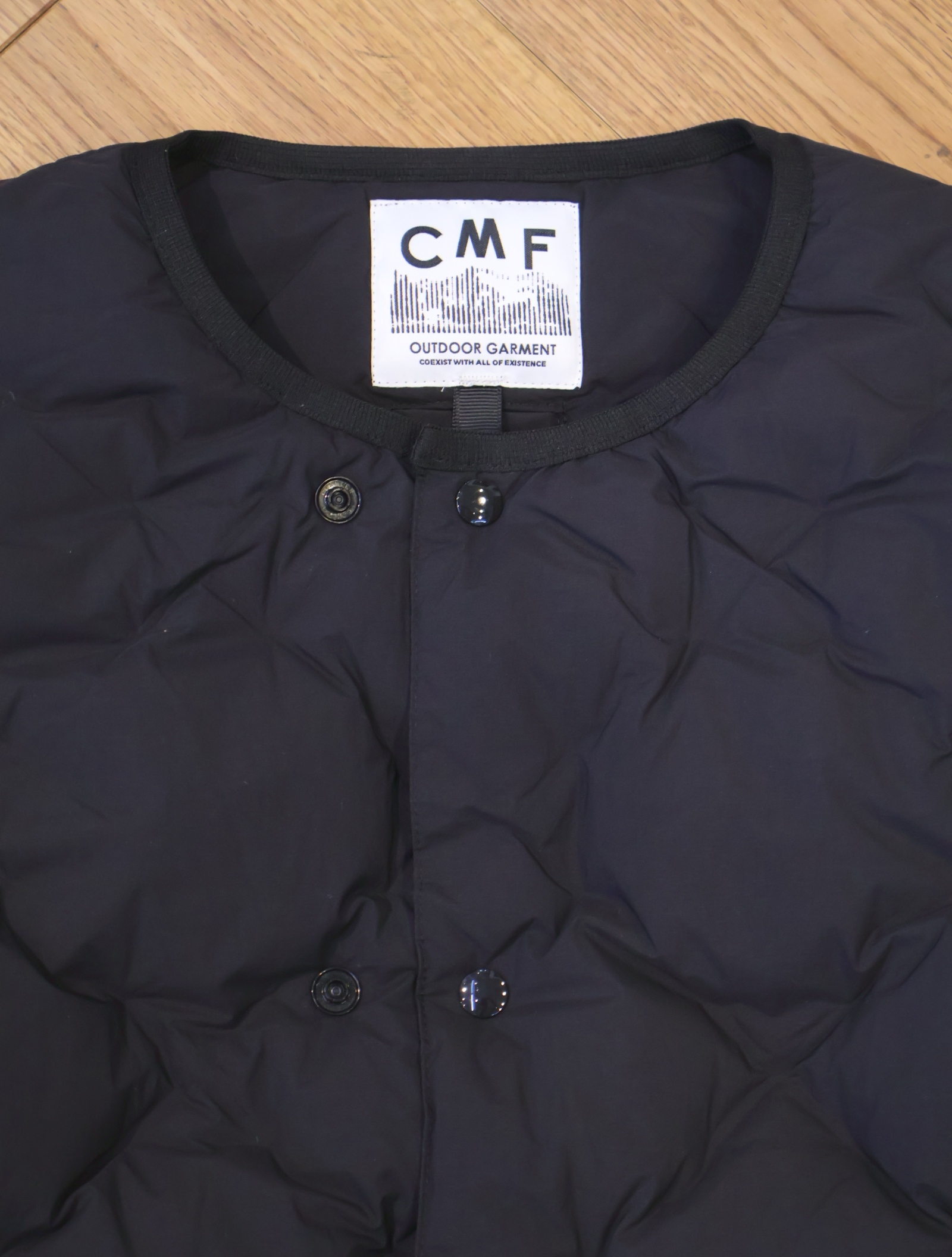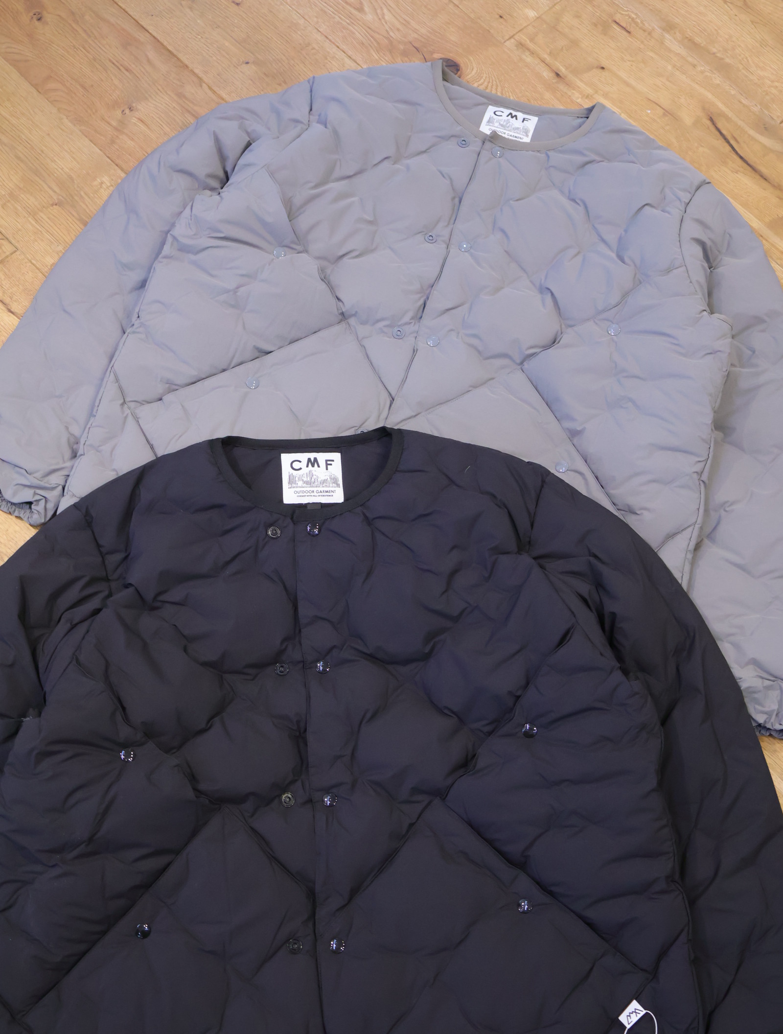 発売されているアウターシェルとも首元のスナップボタンでアタッチャブルが可能となっており、インナーダウンとしてはもちろん、アウターとしても着用できます。